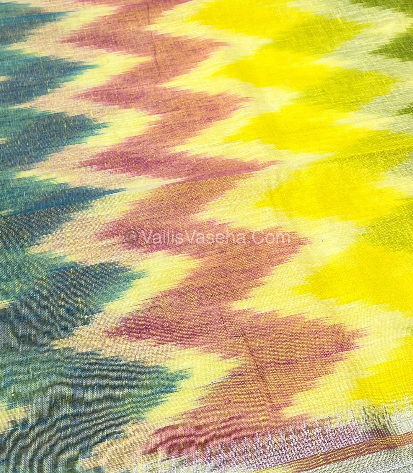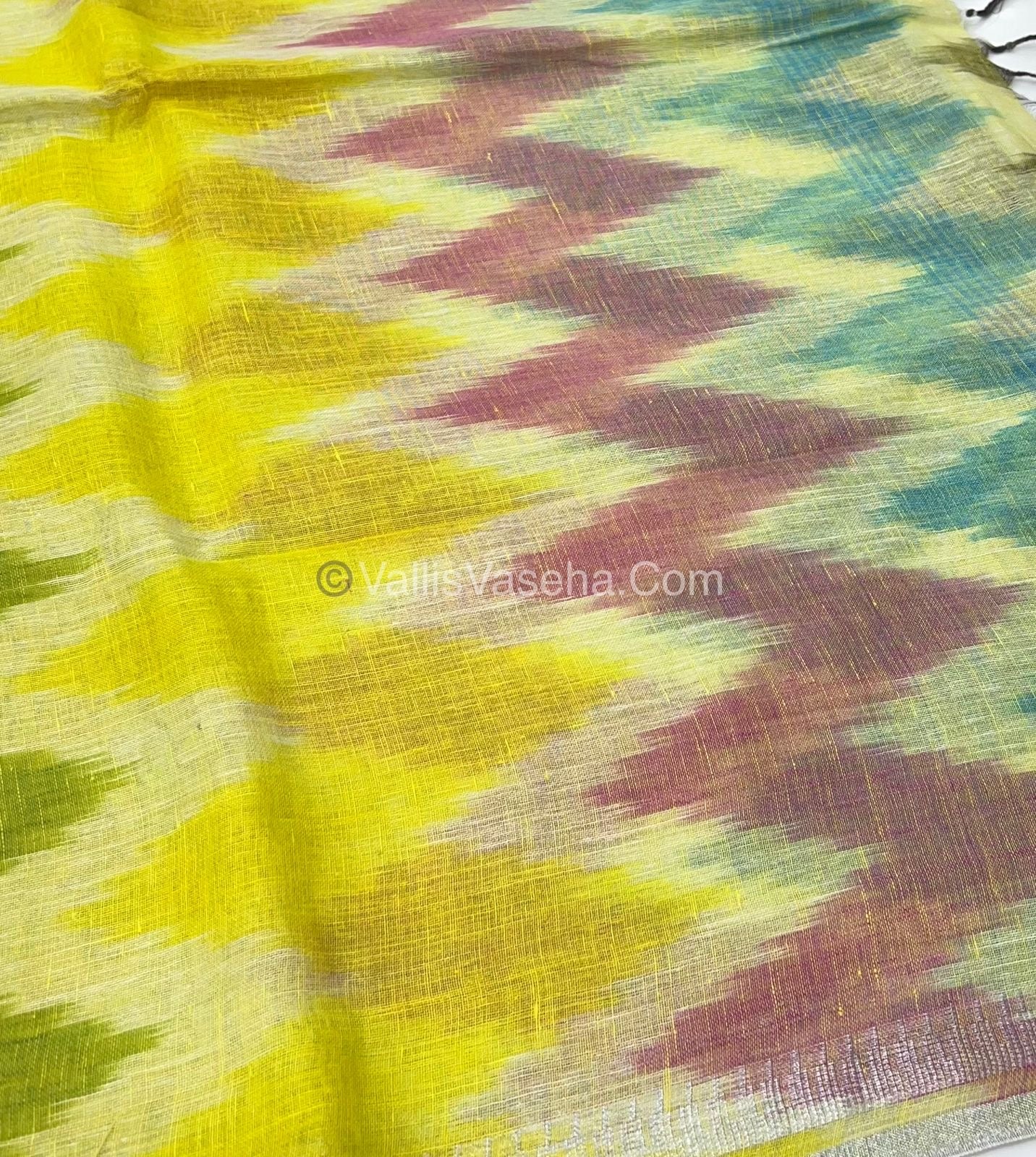 Pure Linen Saree - Ikkat Multicolor Combo - VVPLS001