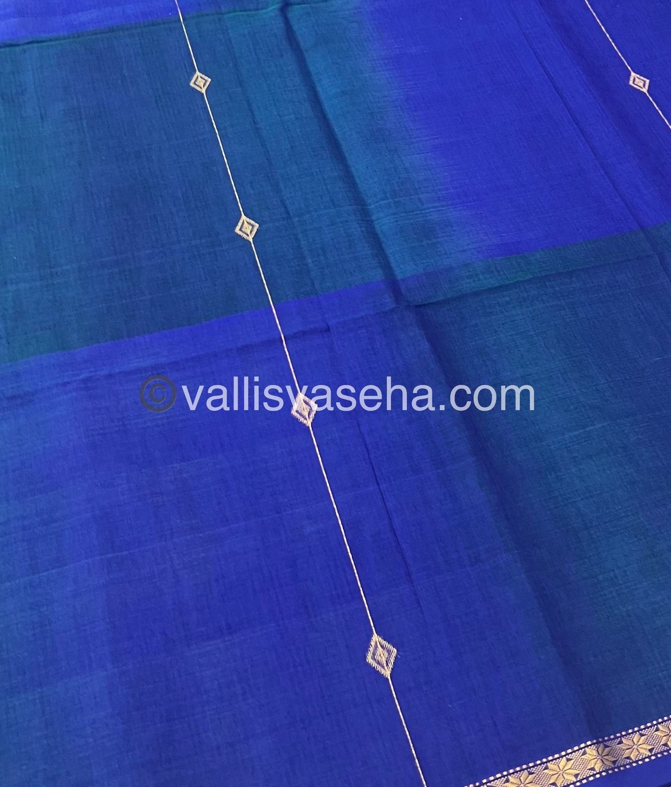 Pure Maheshwari Silk Cotton Saree - Double tone Bluish Green Color - VVMSC001