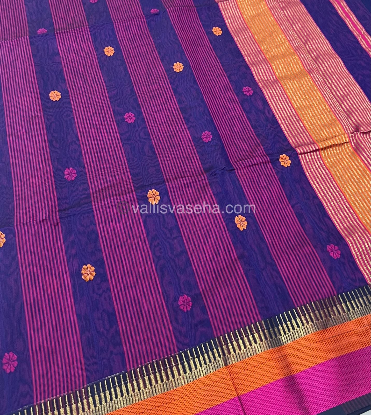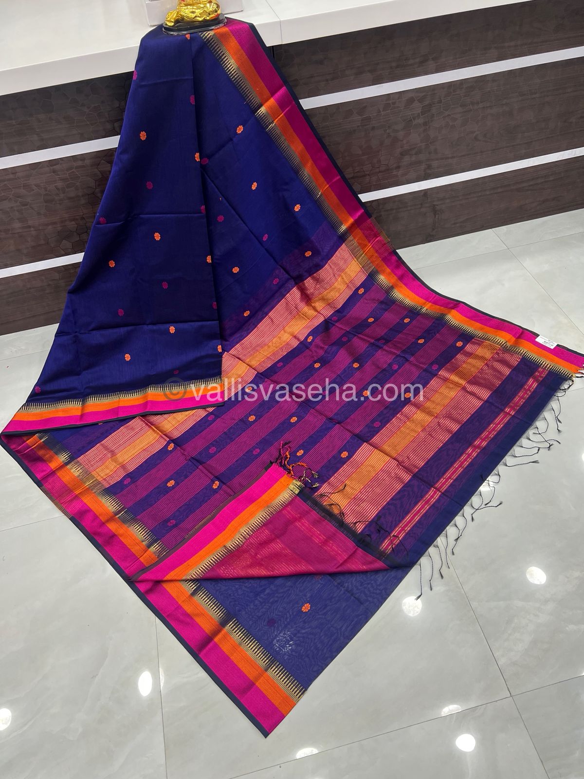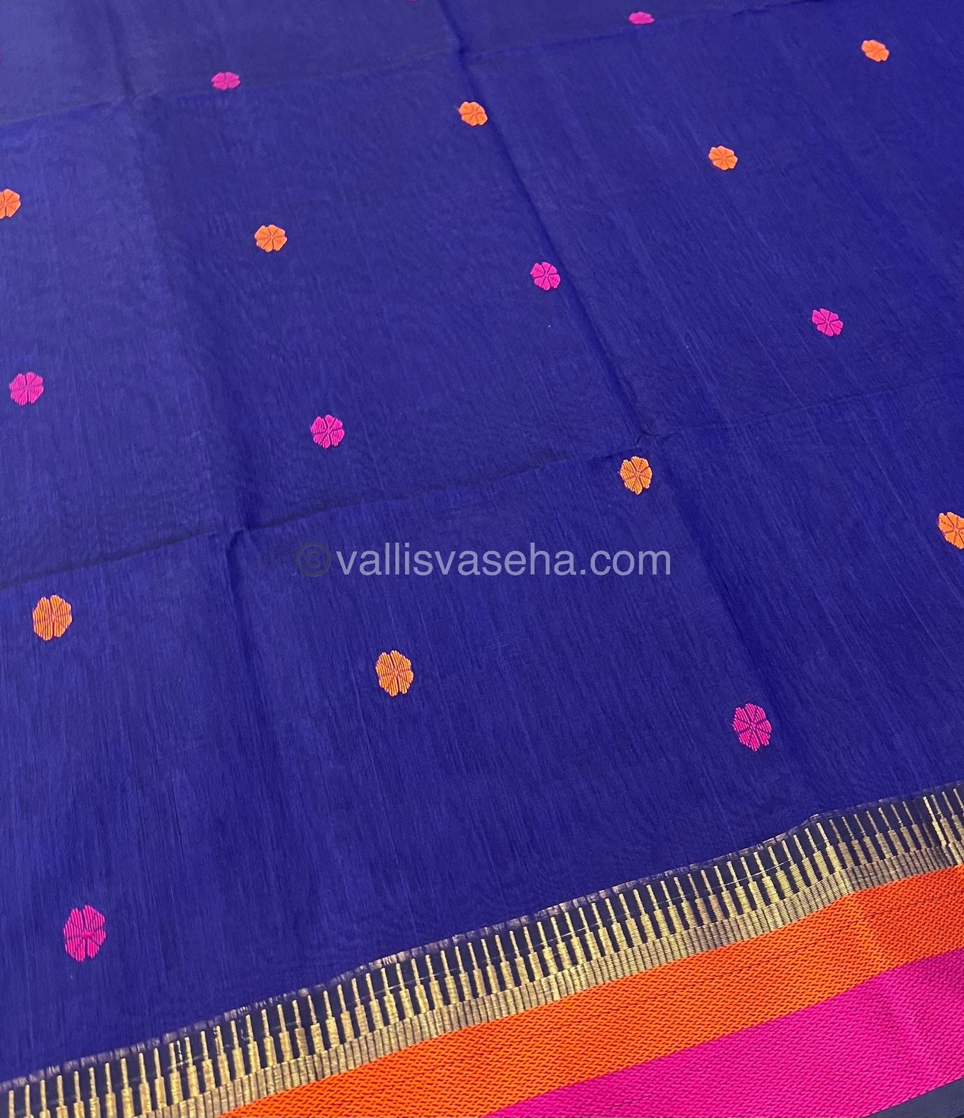 Pure Maheshwari Silk Cotton Saree - Blue & Pink Color - VVMSC004