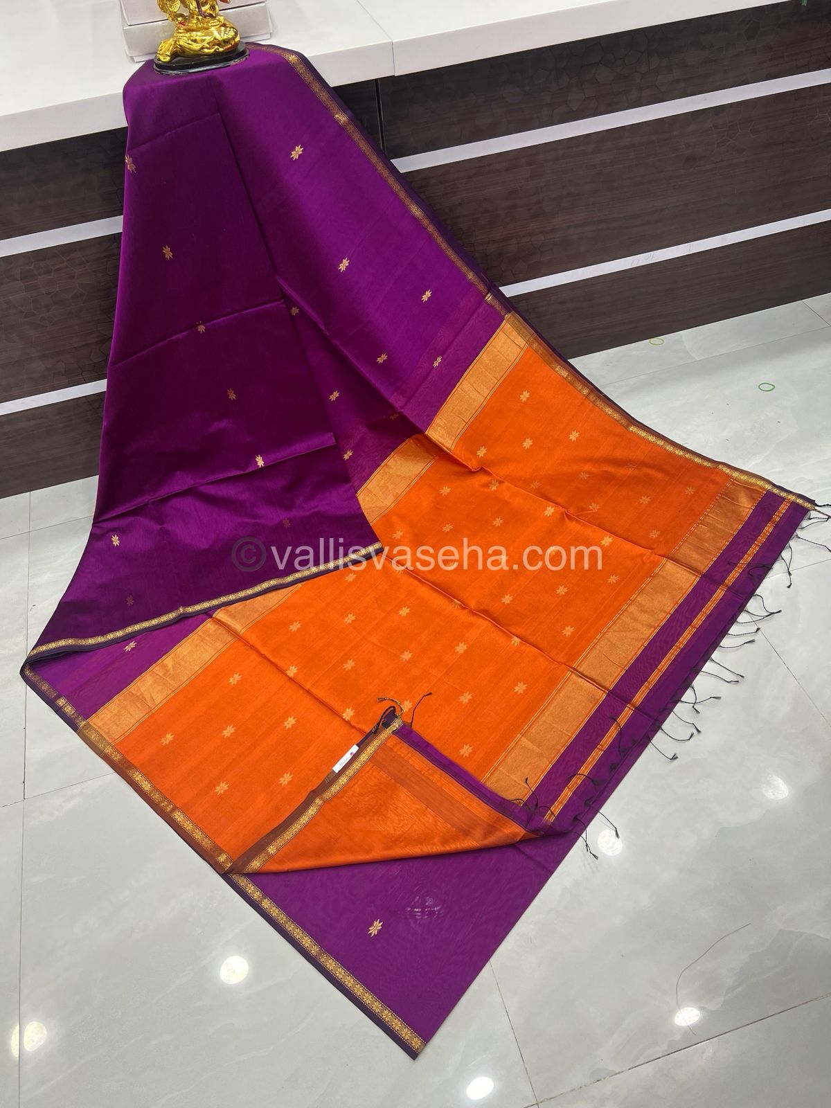 Pure Maheshwari Silk Cotton Saree - Orange & Purplish Pink Color - VVMSC002