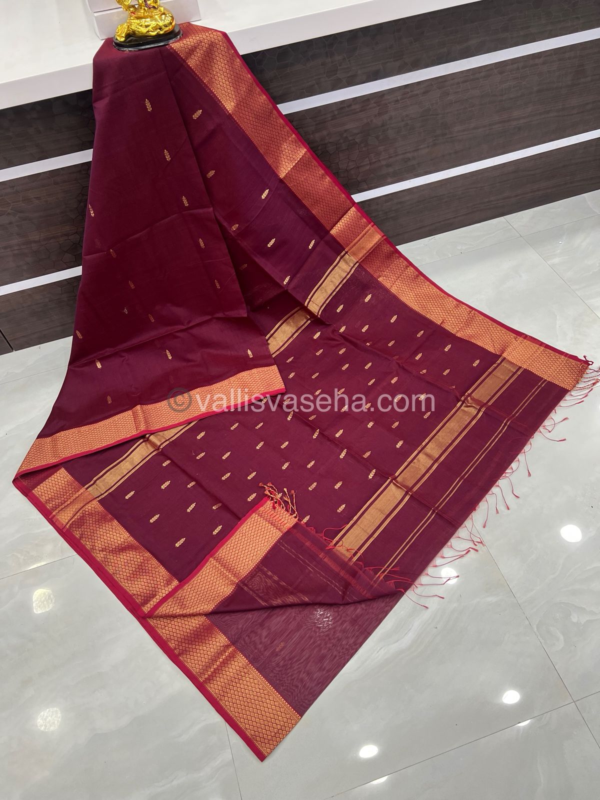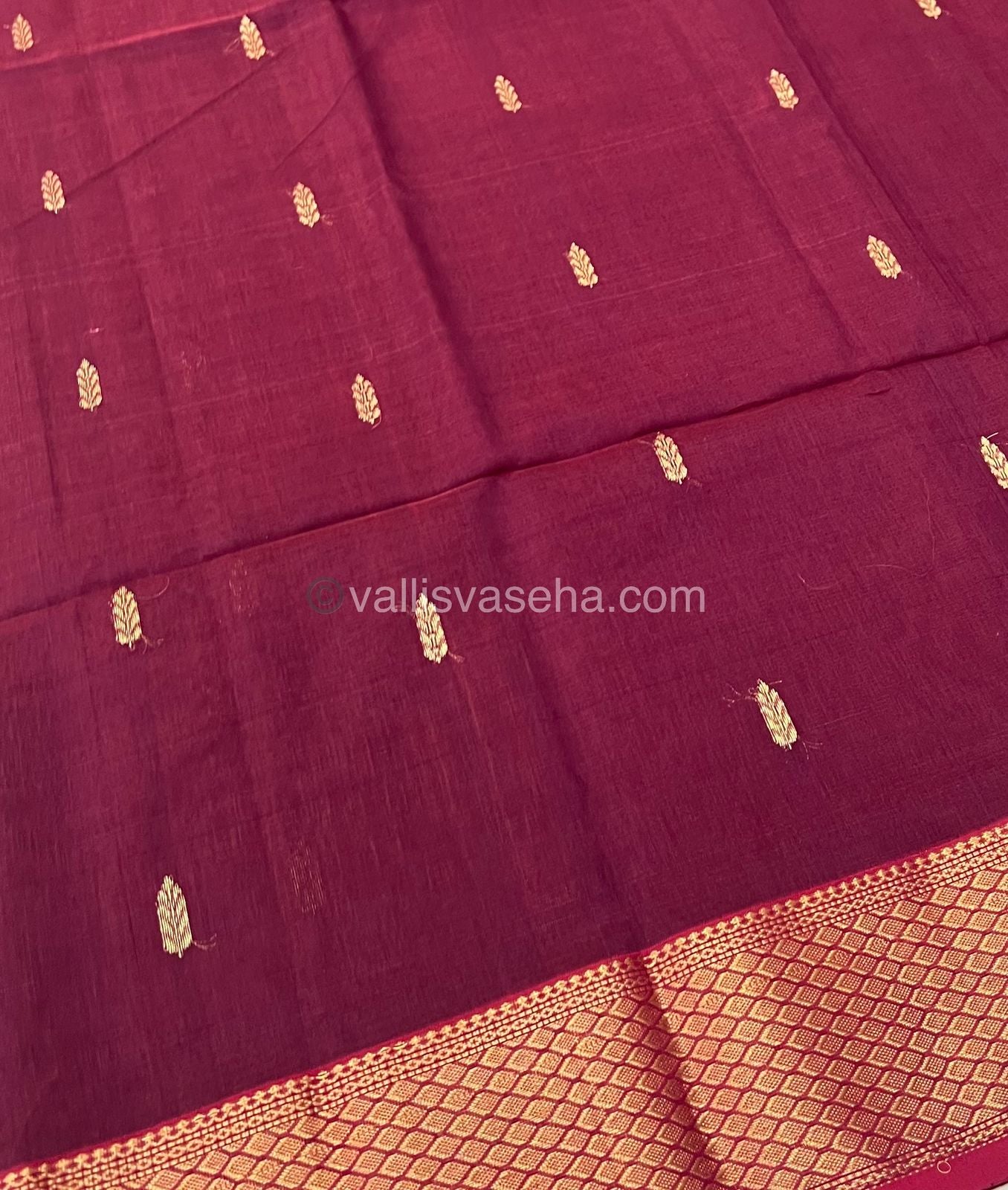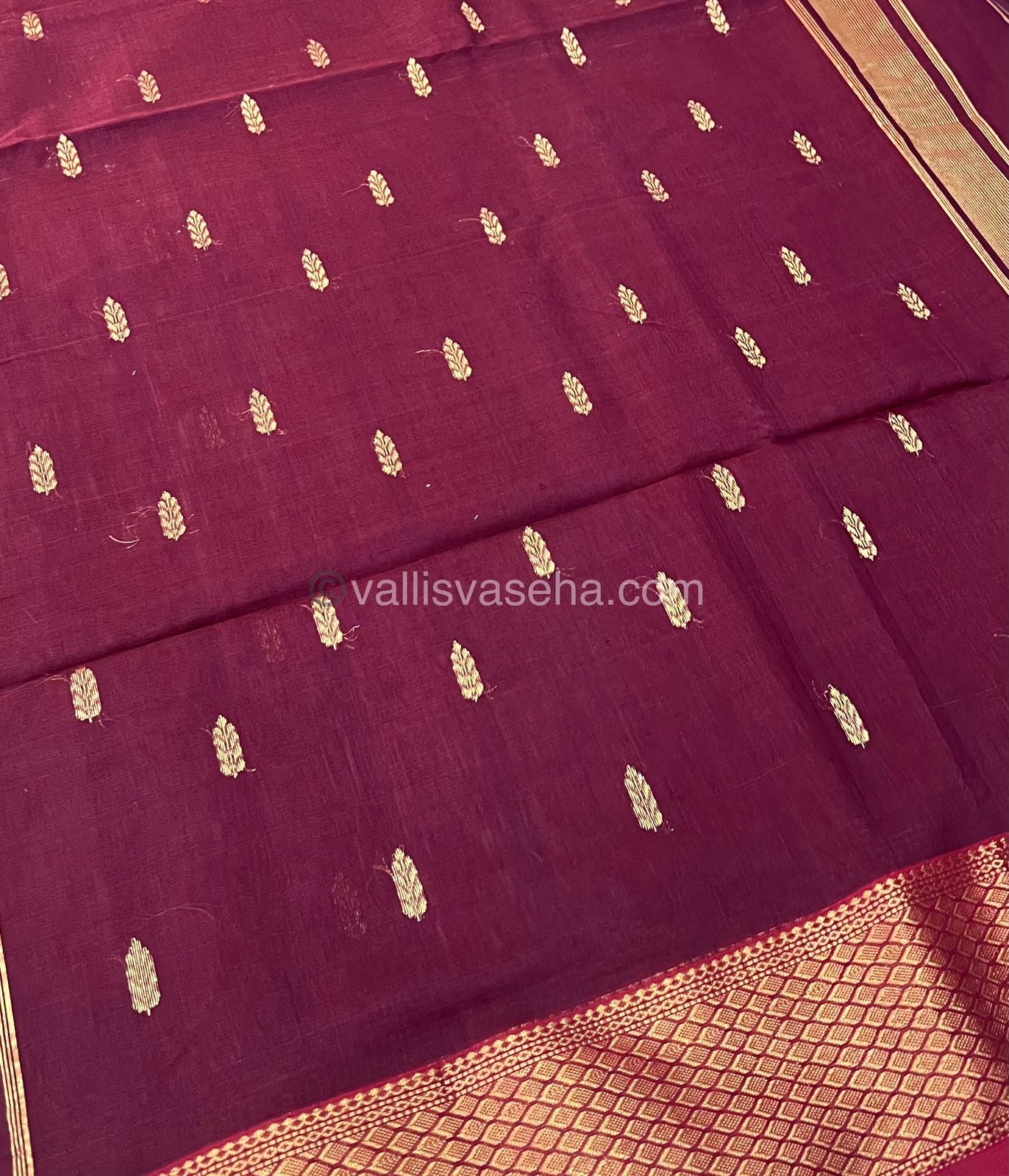Pure Maheshwari Silk Cotton Saree - Maroonish Wine Color - VVMSC003
