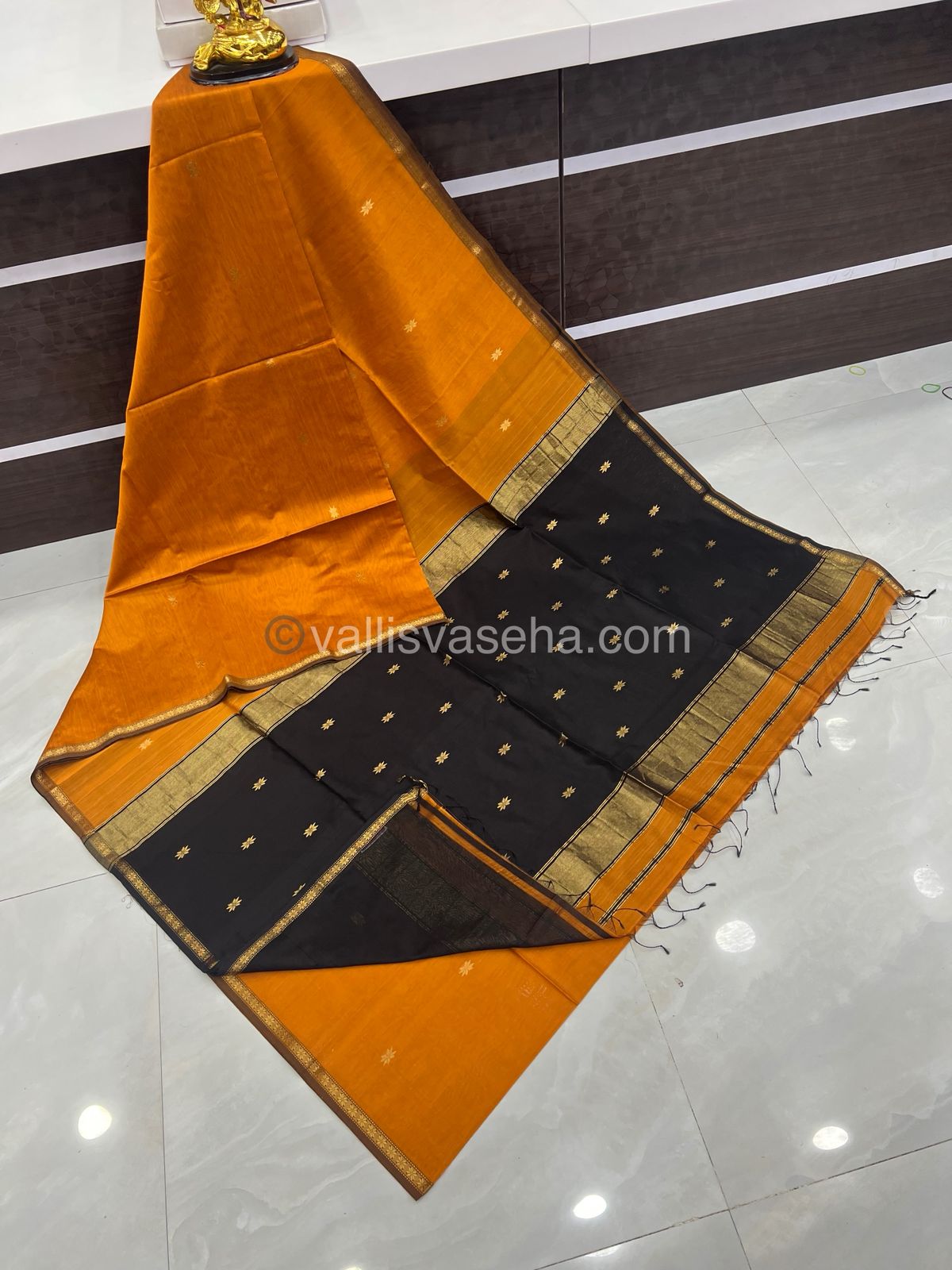 Pure Maheshwari Silk Cotton Saree - Orangish Rust & Black Color - VVMSC002
