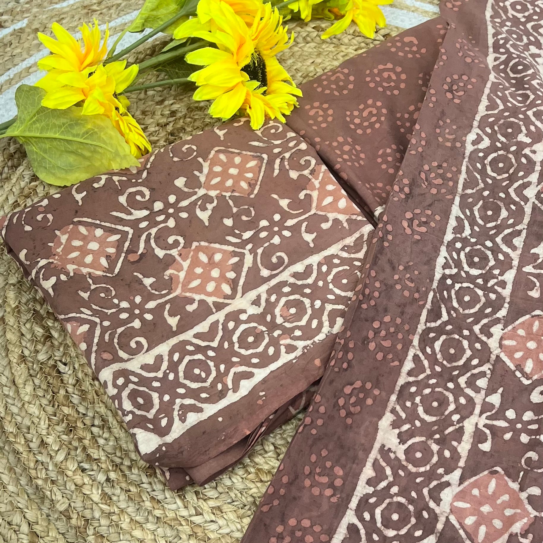 Pure Mul Mul Cotton Salwar Material - Dabu / Bagru print - Dark shade / Pastel Shade