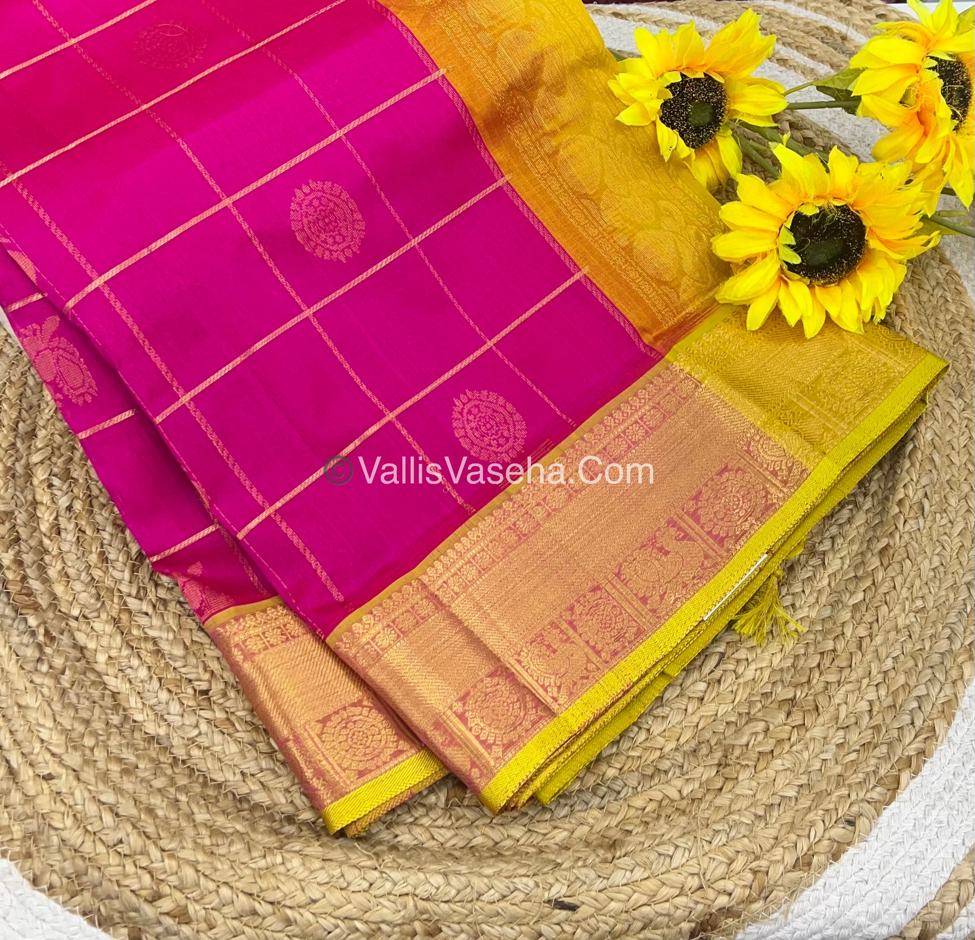 Pure Silk Cotton Saree - Mayil & Chakkaram Design - Pink With Yellow - VVMC001