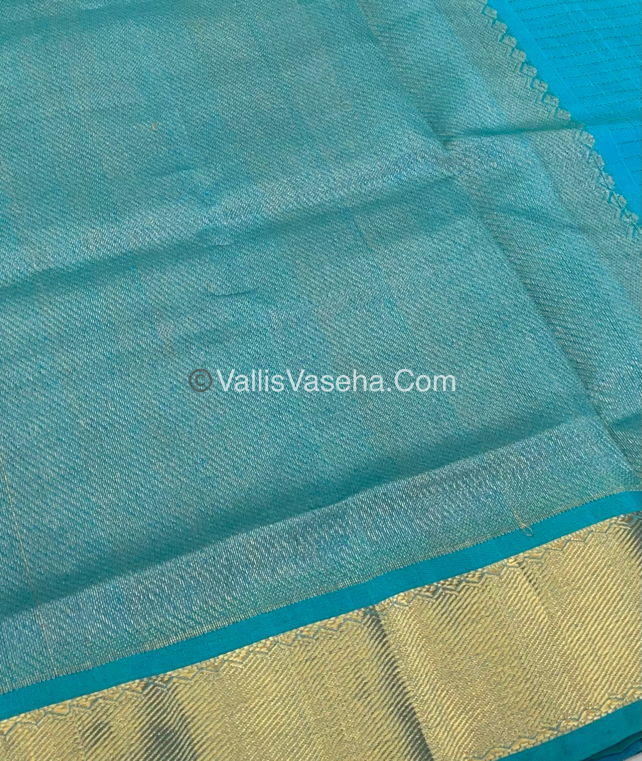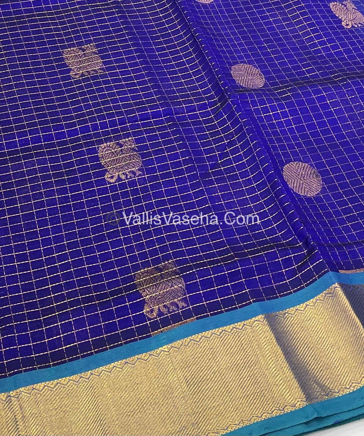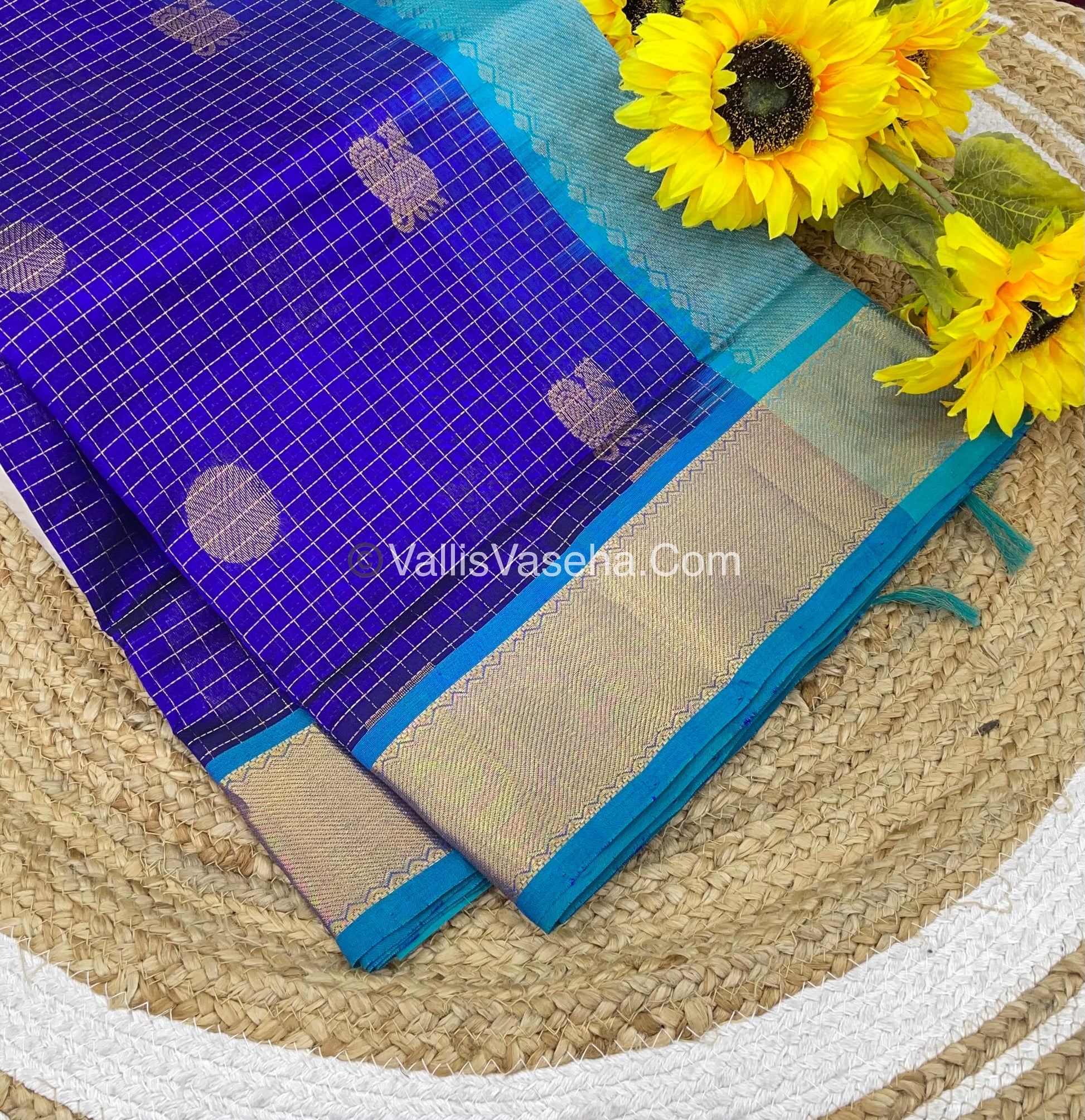 Pure Silk Cotton Saree -Mayil & Chakkaram Design - Blue with Turquoise Blue Combo - VVMC002