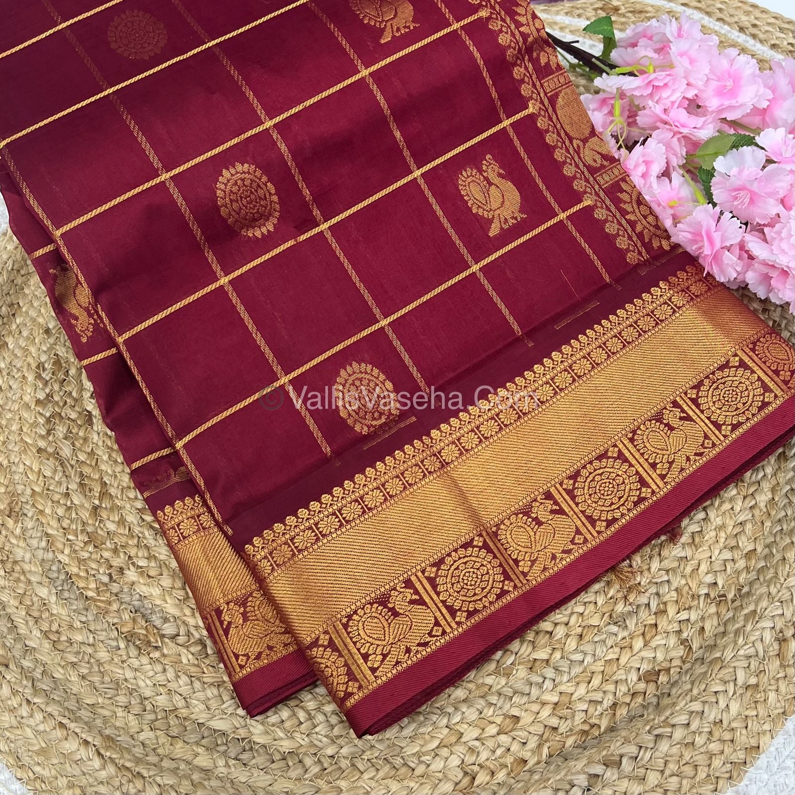 Pure Silk Cotton Saree - Mayil & Chakkaram Design - Maroon Shade- VVMC001