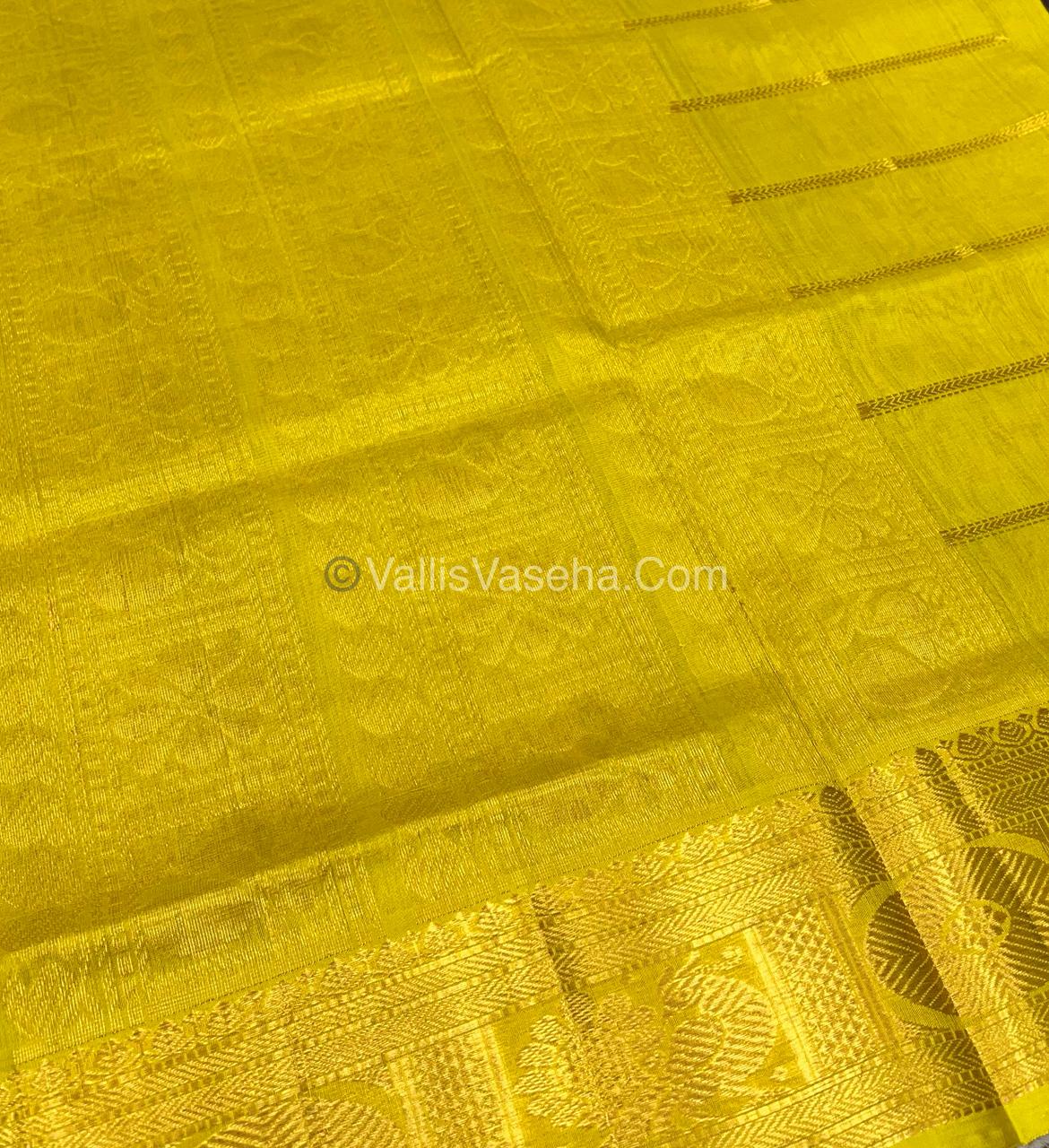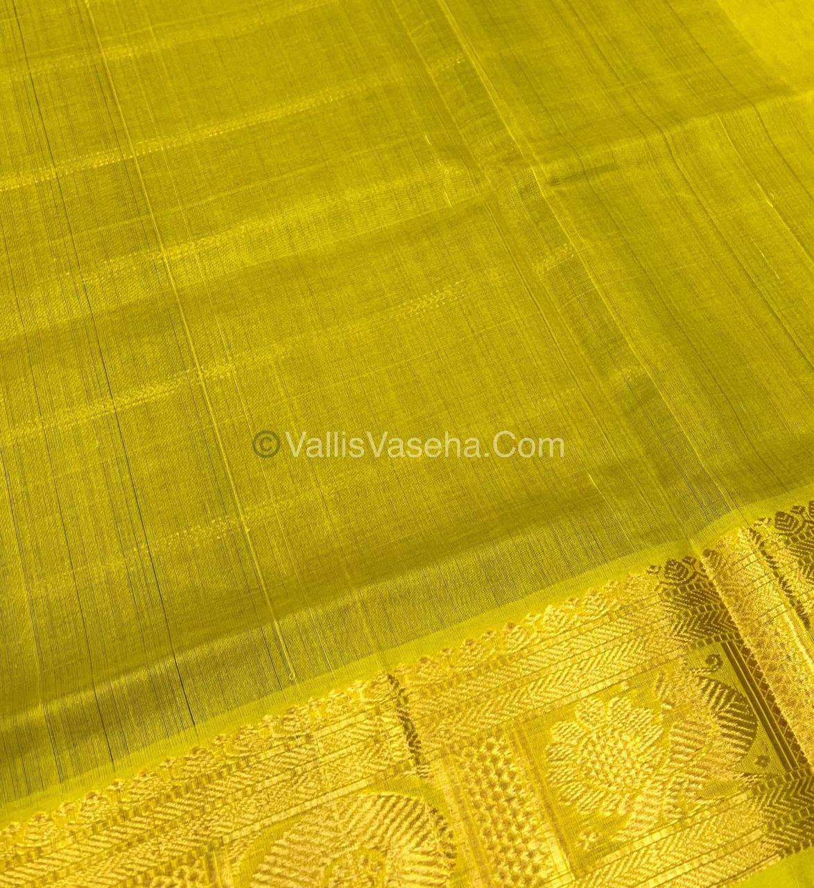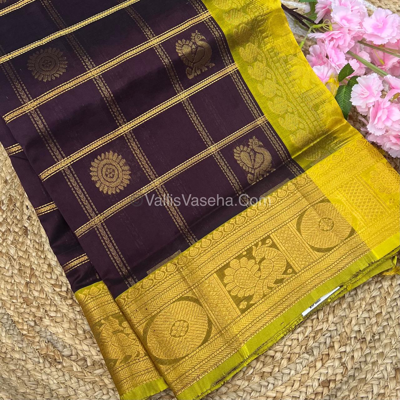 Pure Silk Cotton Saree - Mayil & Chakkaram Design - Brown With Yellow Combo -VVMC003