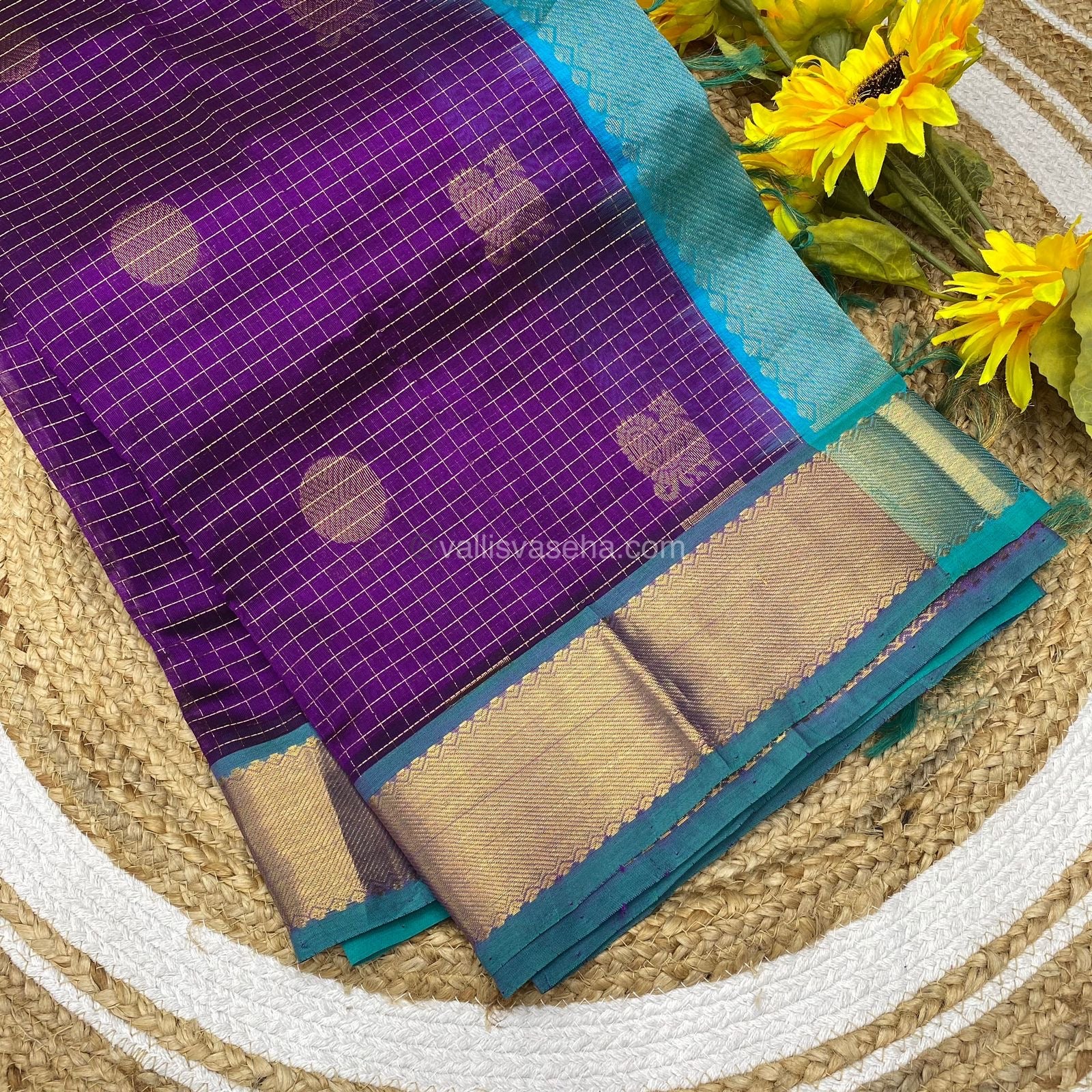 Pure Silk Cotton Saree - Mayil & Chakkaram Design - Purple with Turquoise Blue Combo - VVMC002