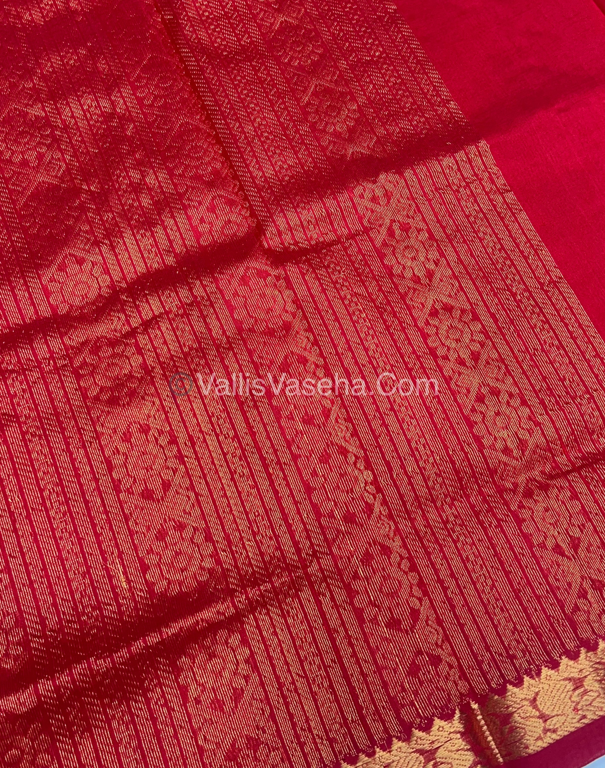 Pure Silk Cotton Saree - Mayil & Elephant Design - Red - VVMES001