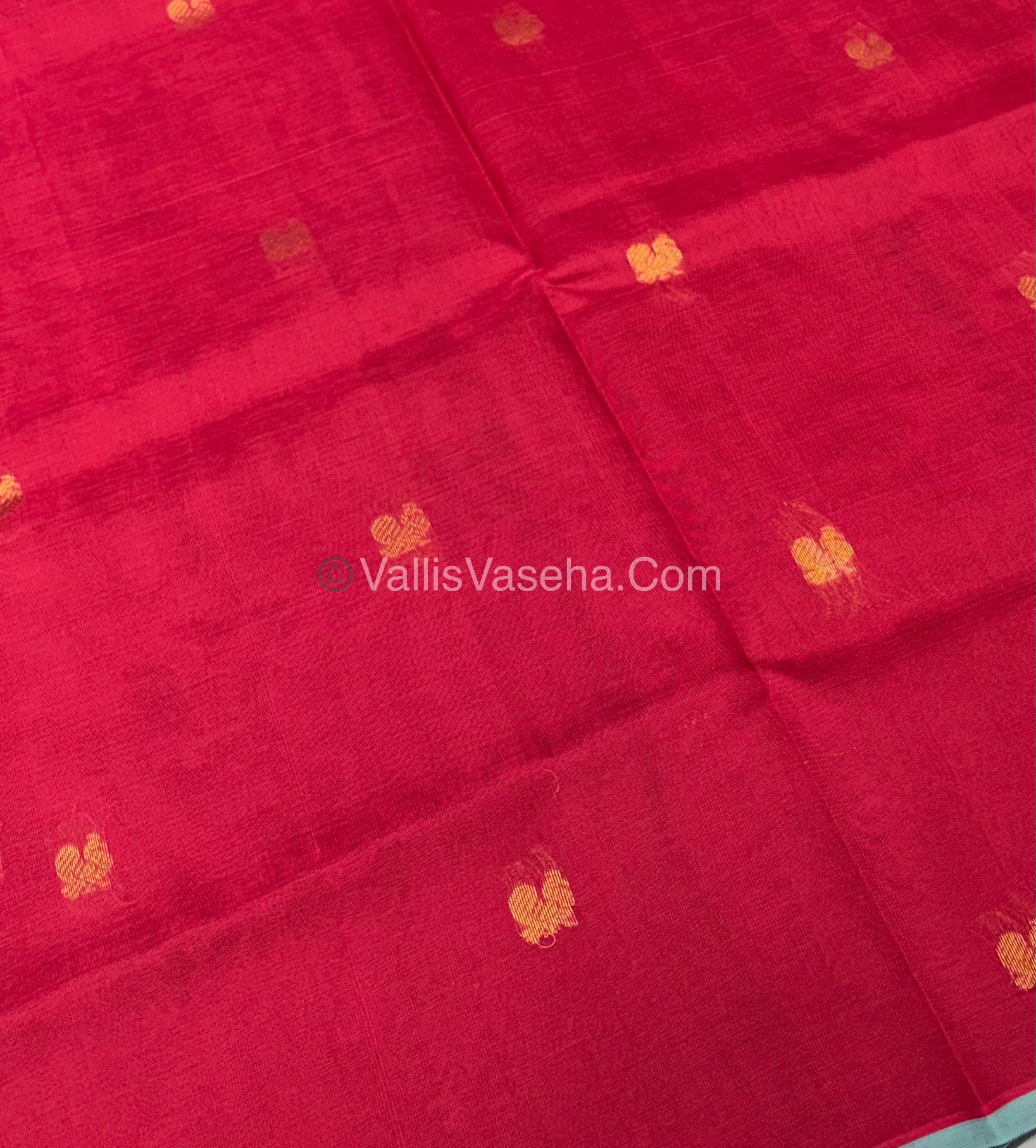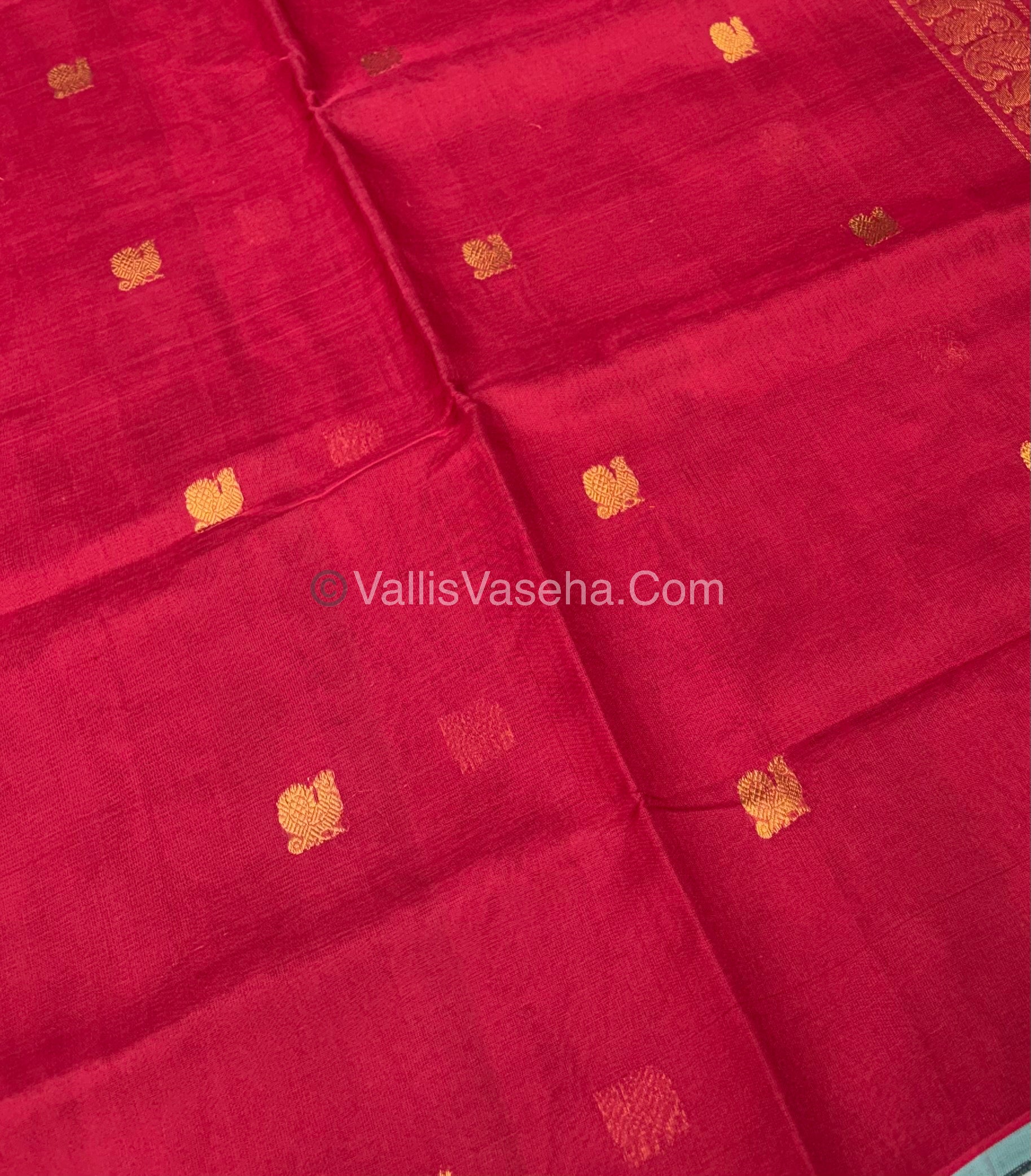 Pure Silk Cotton Saree - Red With Blue Shade - VVPSC002