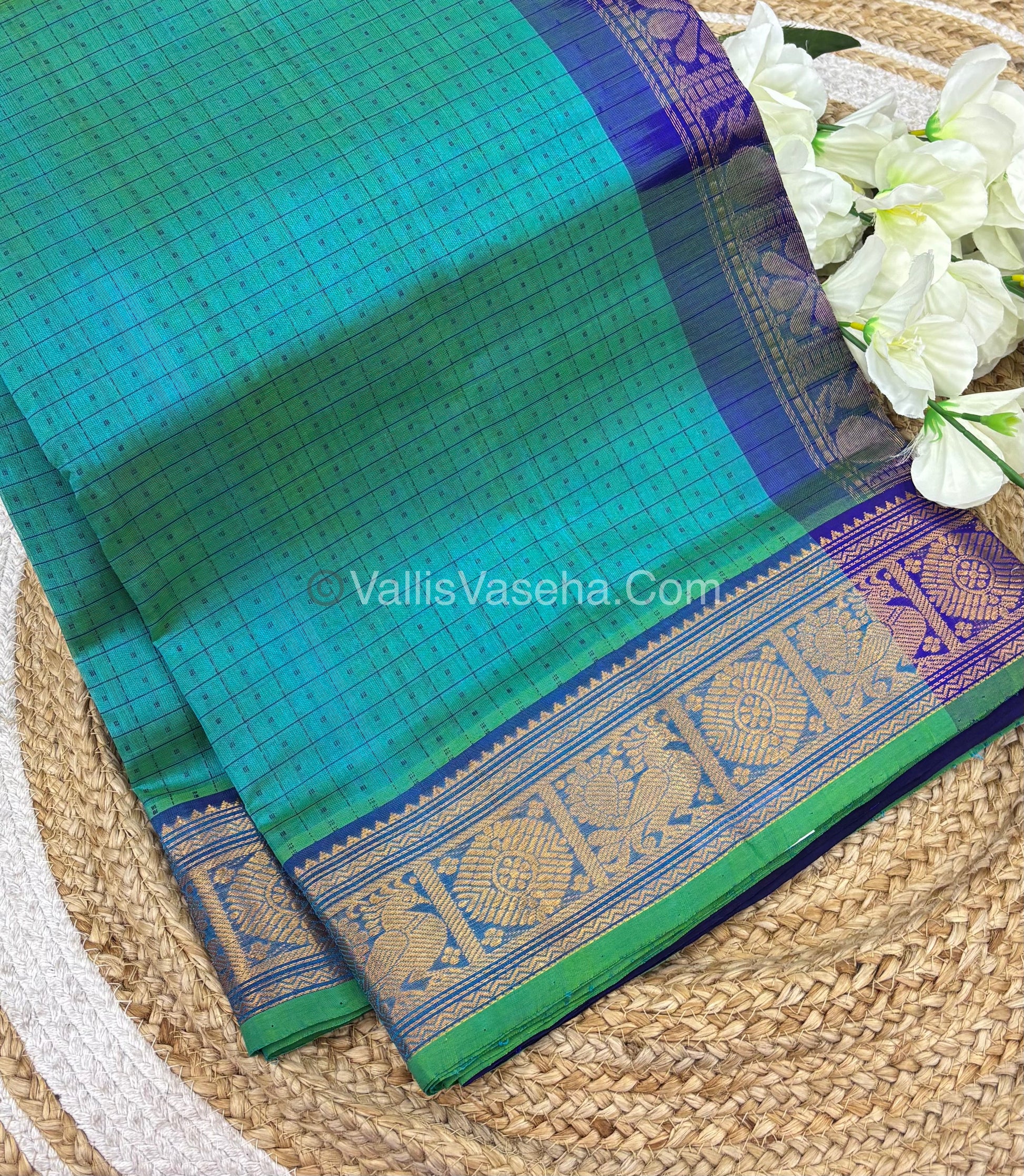Pure Silk Cotton Saree - Blue With Blue Shade - Lakshadeepam Design - VVPLD001