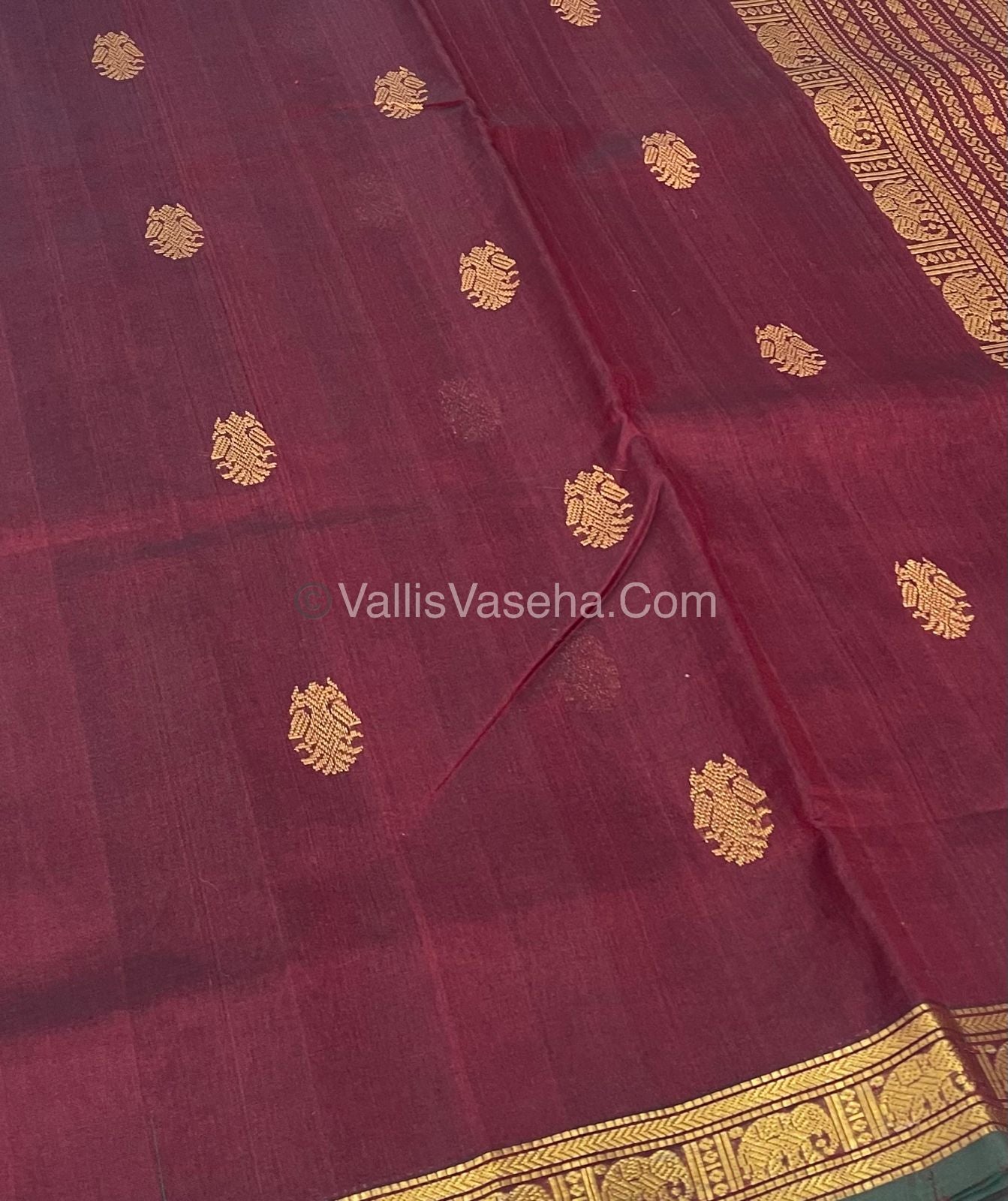 Pure Silk Cotton Saree - Retta Mayil Design - VVRMS001