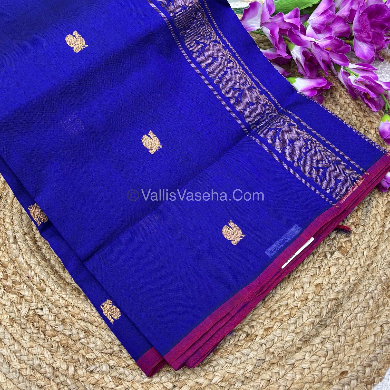 All over small peacock Zari Butta and Thin strips of contrast border.