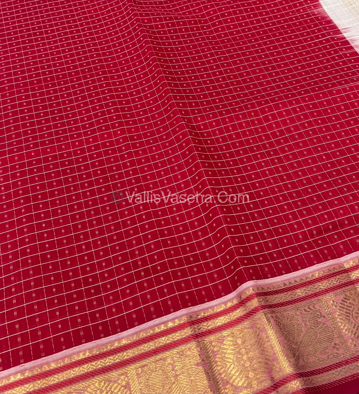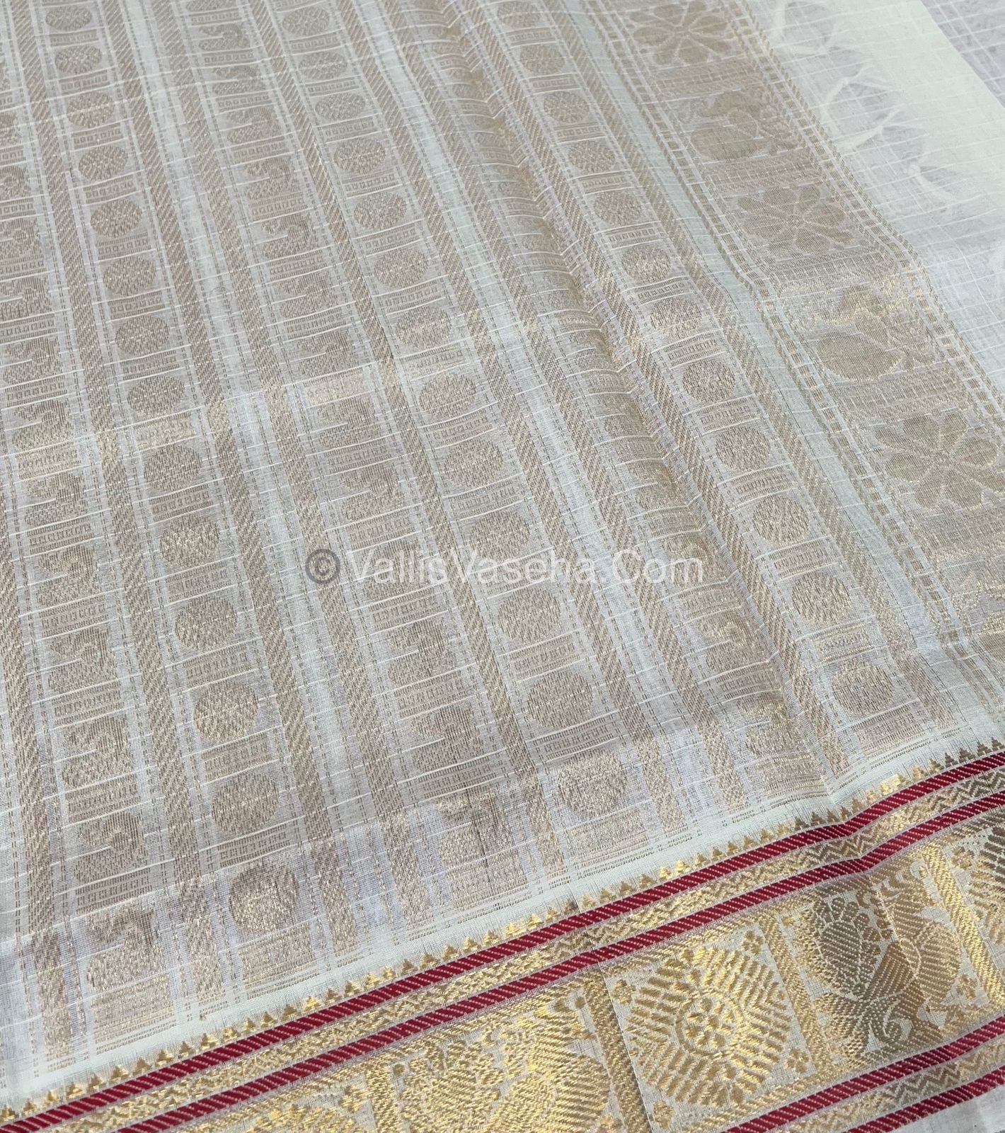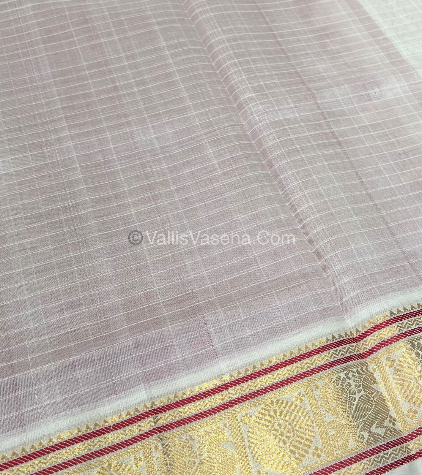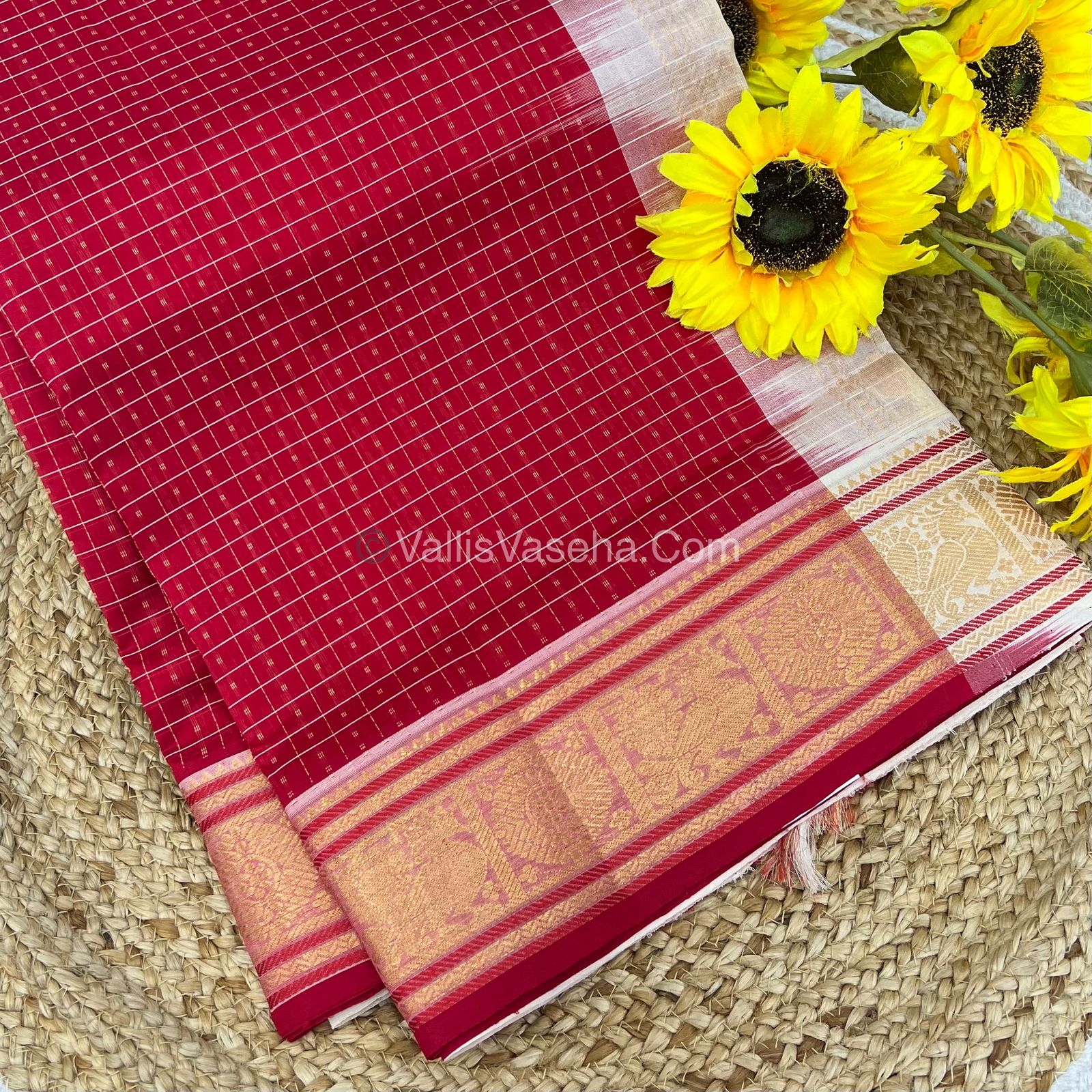 Pure Silk Cotton Saree - Red With White Shade - Lakshadeepam Design - VVPLD001