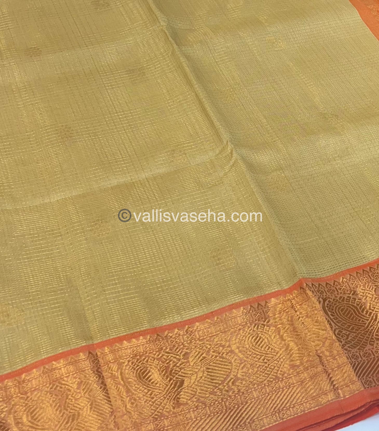 Pure Silk Cotton Saree - Vairavoosi checks - Mayil & Chakkaram - Cream With Orange - VVMCV002
