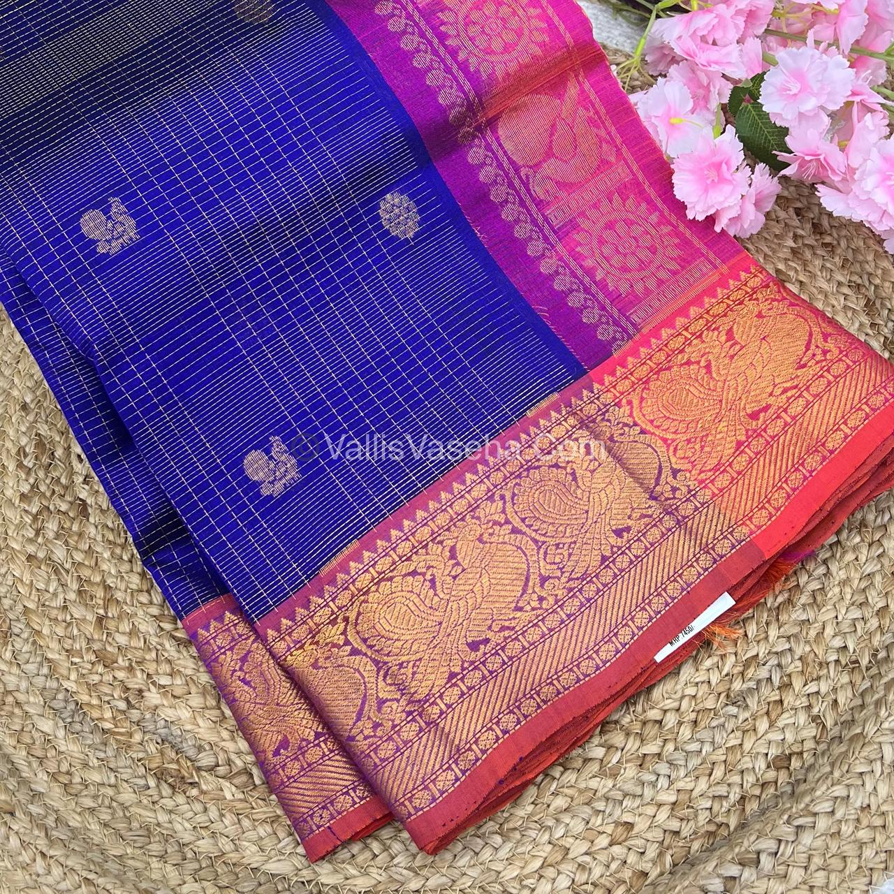 Pure Silk Cotton Saree - Vairavoosi checks - Mayil & Chakkaram - VVMCV002