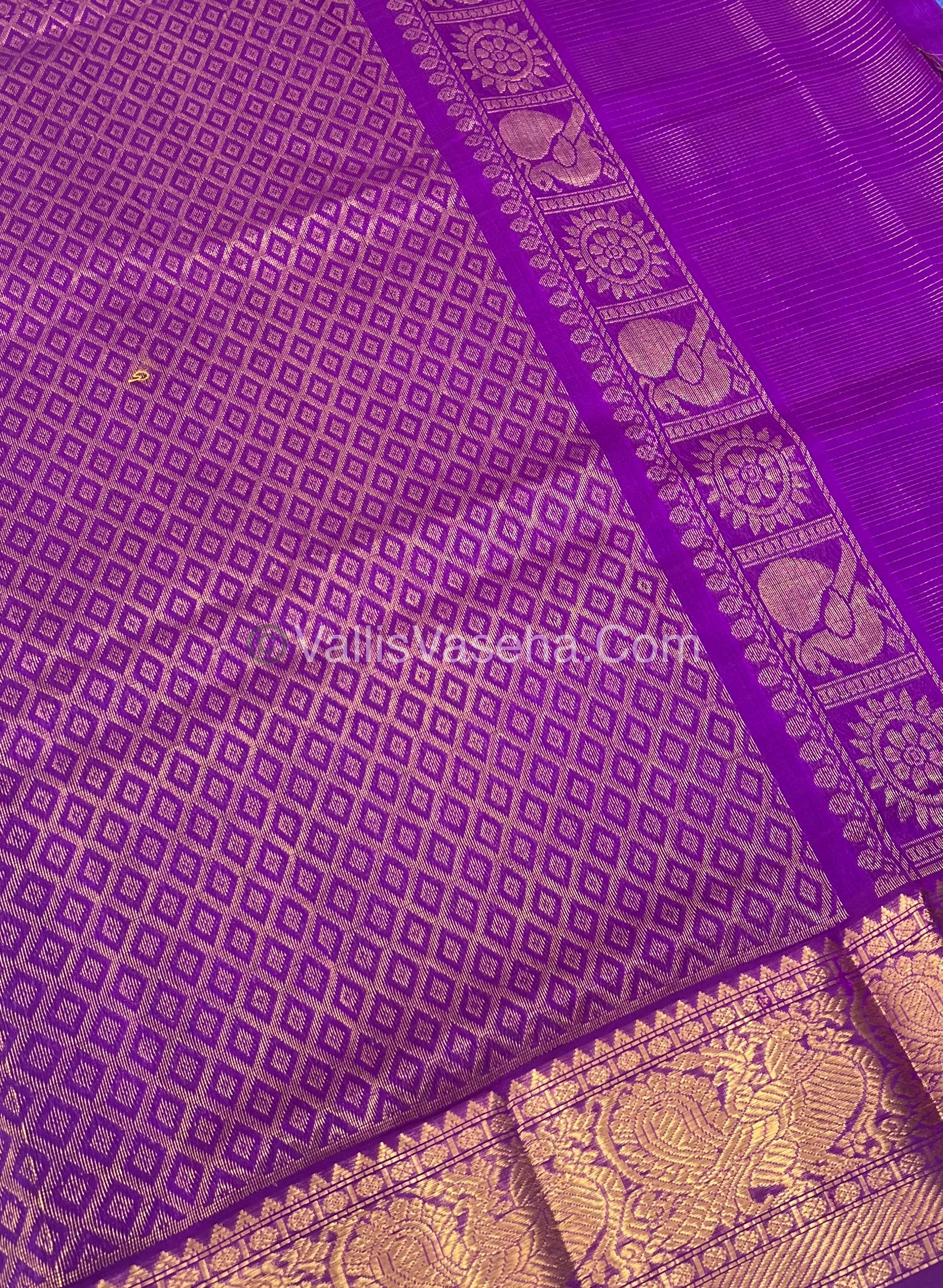Amazing Pure Vairs Voosi checks & Mayil And Chakkaram  Silk Cotton saree with small butta design all over the saree with Kanchi border .