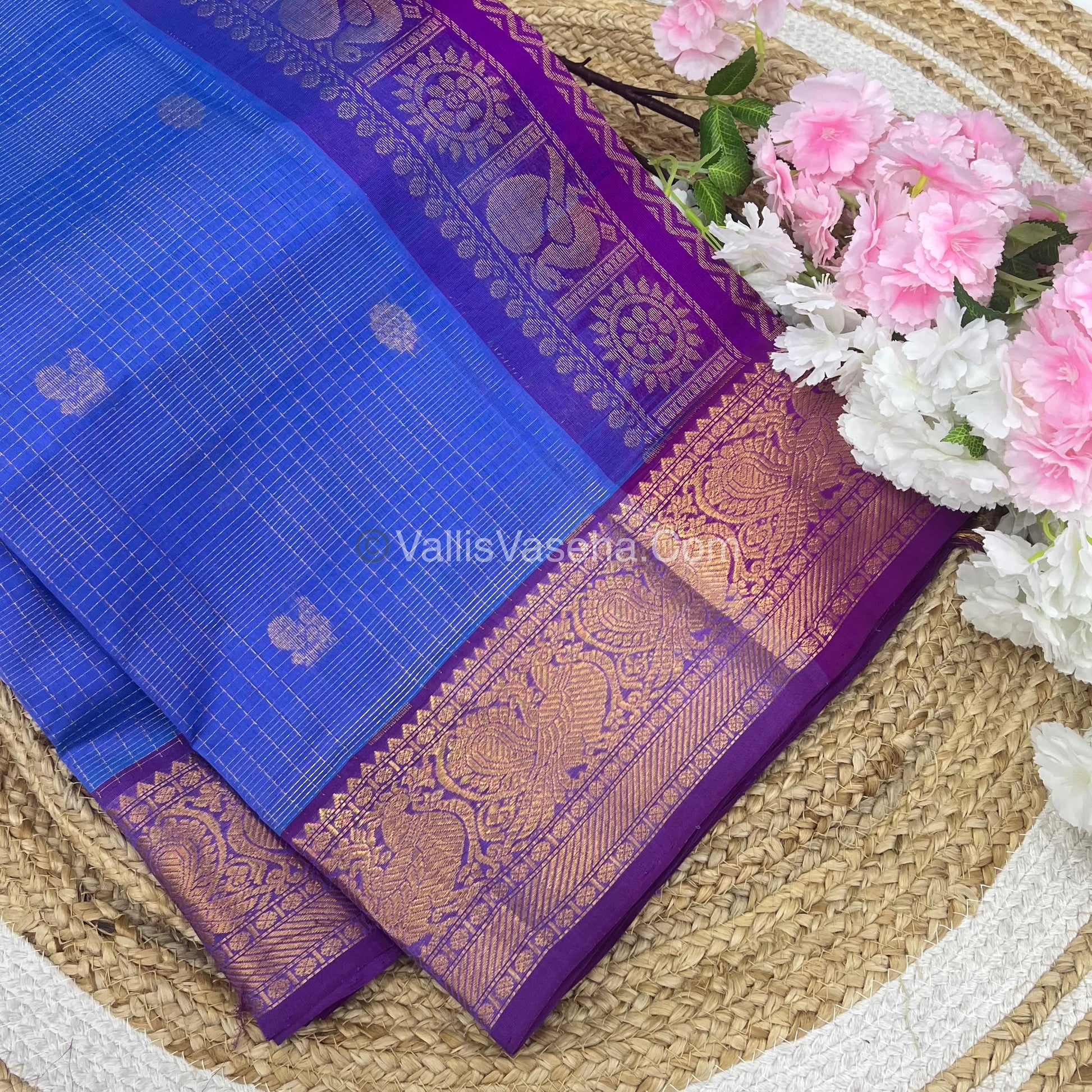 Pure Silk Cotton Saree - Vairavoosi checks - Mayil & Chakkaram - VVMCV002
