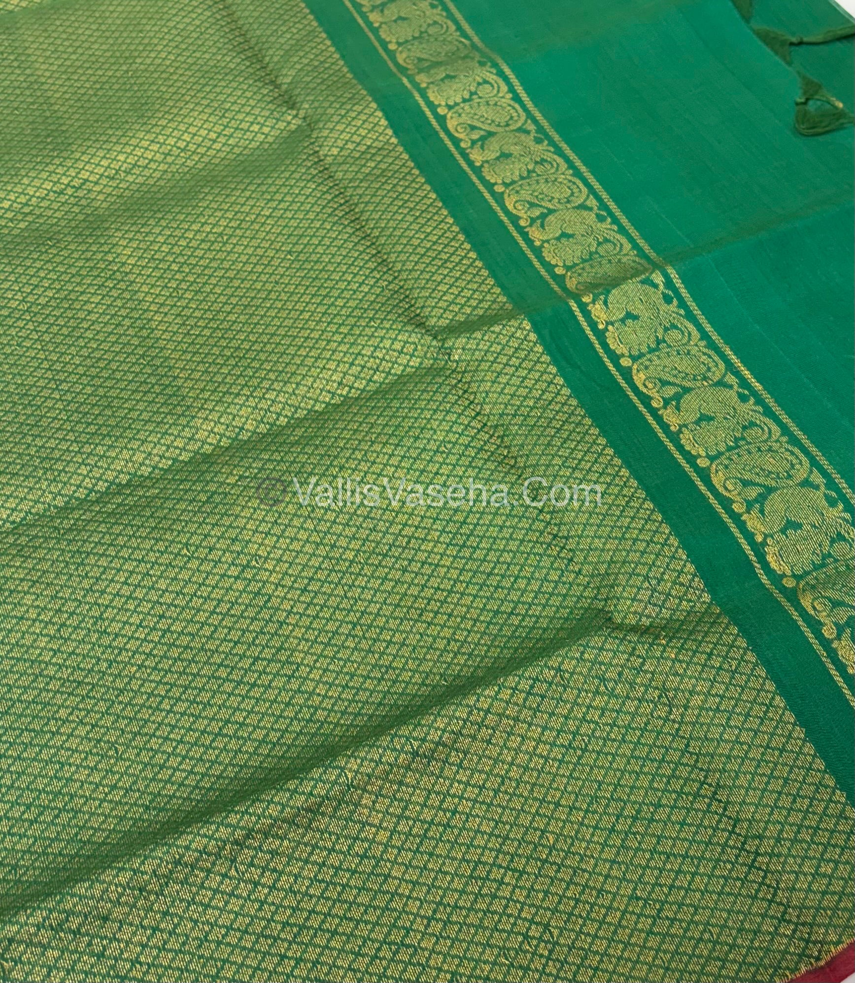 Pure Silk Cotton Saree - Violentish Green With Pink Shade - VVPSC002