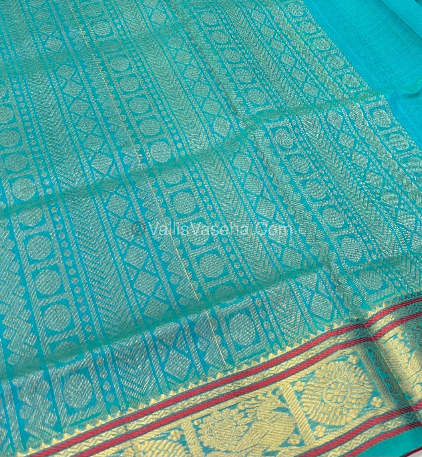 Pure Silk Cotton Saree - Red With Blue - Lakshadeepam Design - VVPLD001