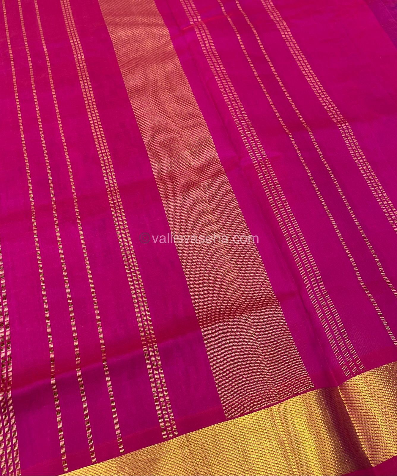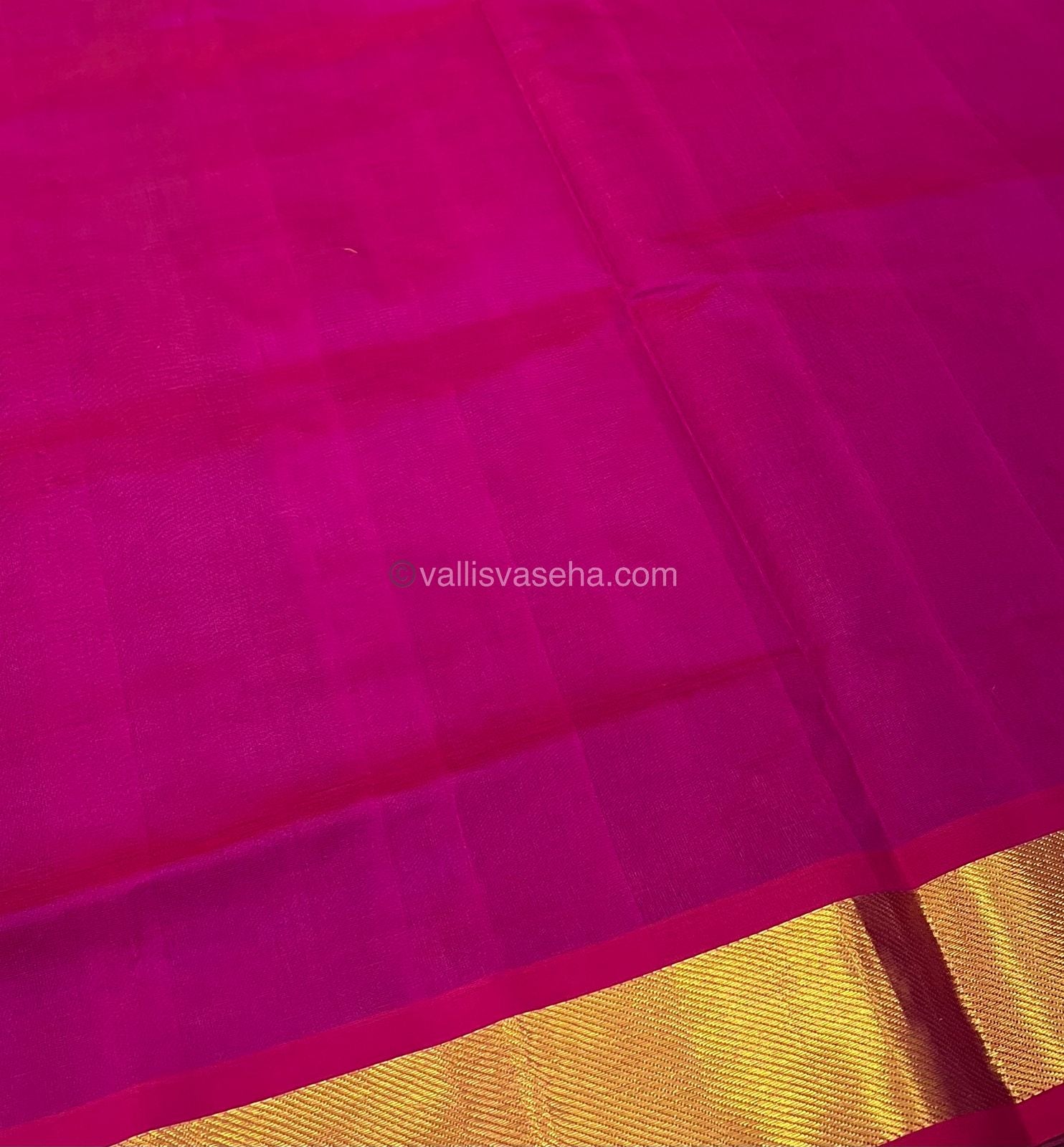 Pure Silk cotton sarees with Thick Pavanji zari woven border.60% silk thread and 40% cotton thread .Contrast Zari woven Pallu and Contrast Blouse .