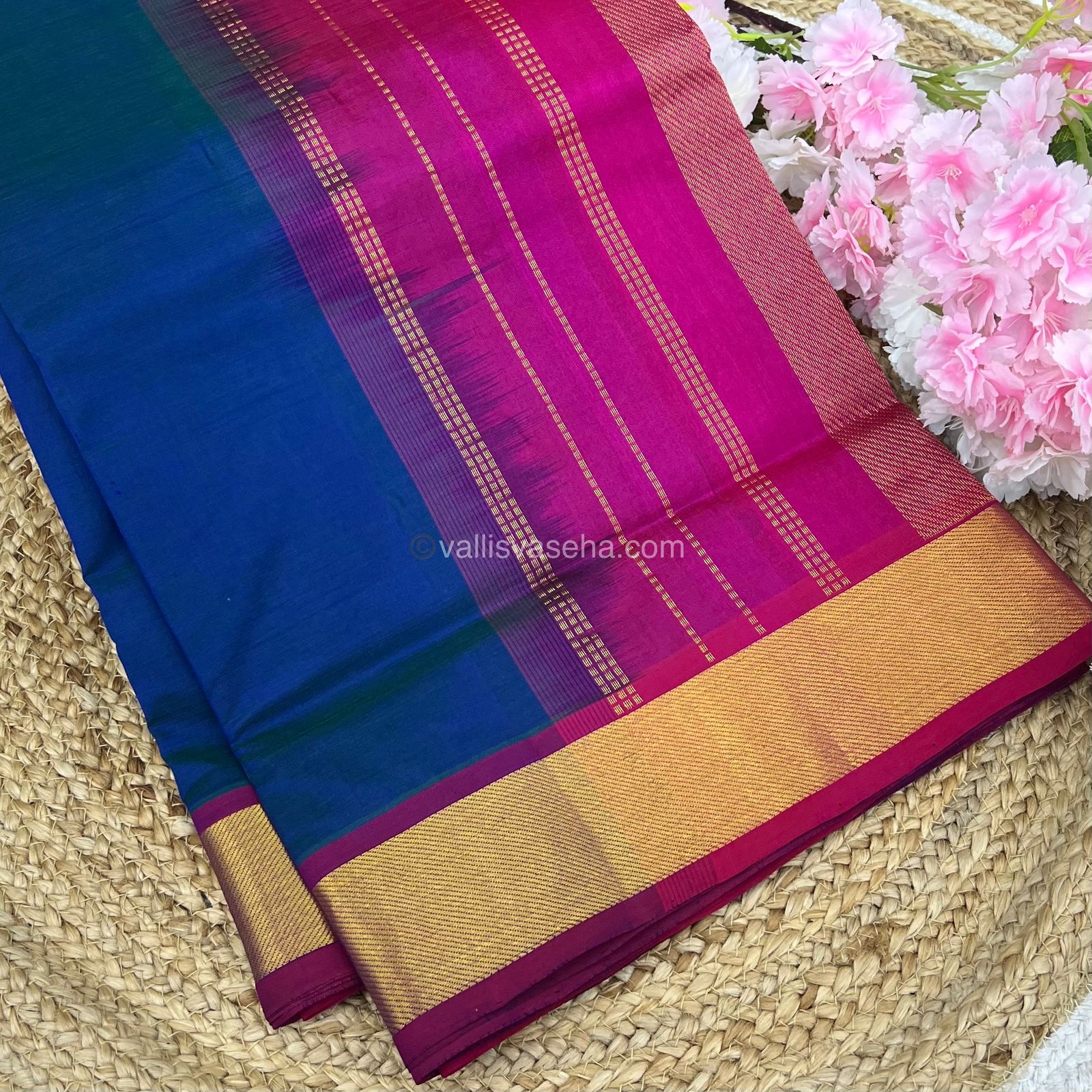 Pure Silk Cotton Sarees - Double Tone Blue With Pink - VVPSC003