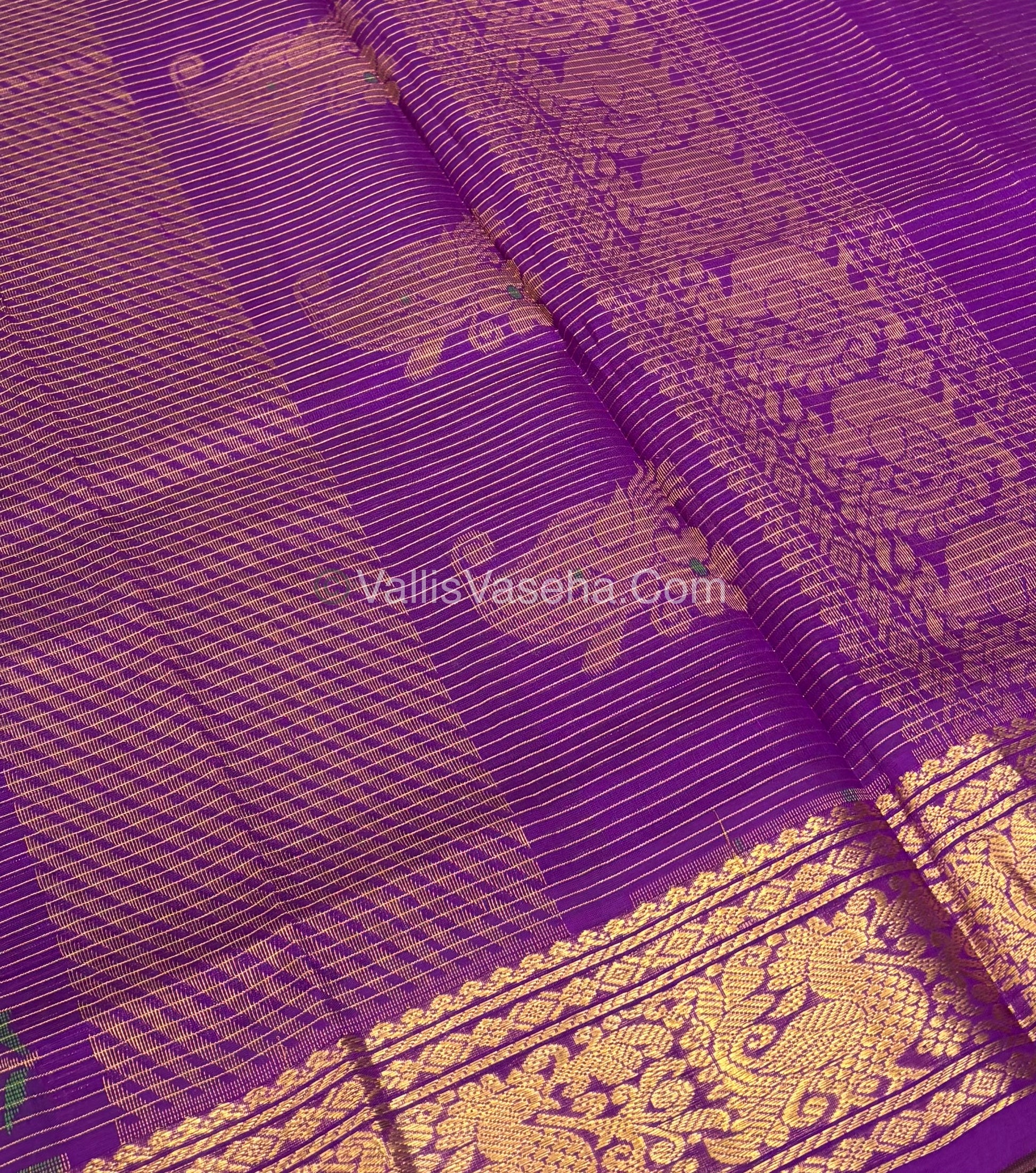 Pure Silk Cotton Sarees - Vairavoosi Lines - Lemon Green With Purple Shade - VVPSC006