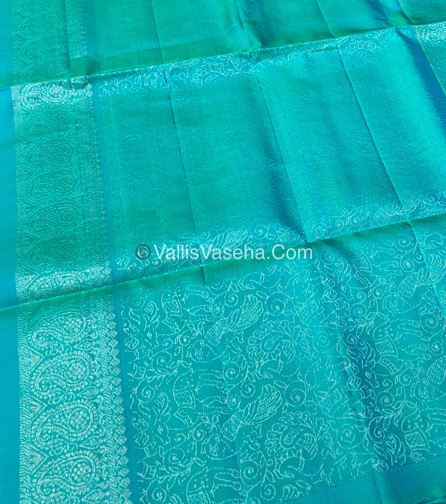 Pure Soft Silk Saree - Double warp with soft finish -Trendy - Border less - light weight saree, All Over Elephant & Mayil Silver Zari Butta , Rich Pallu and Rich Blouse.