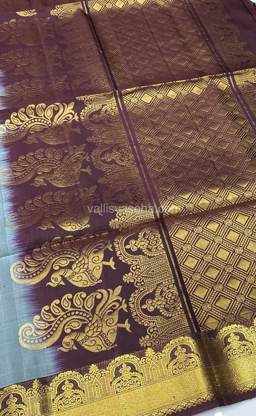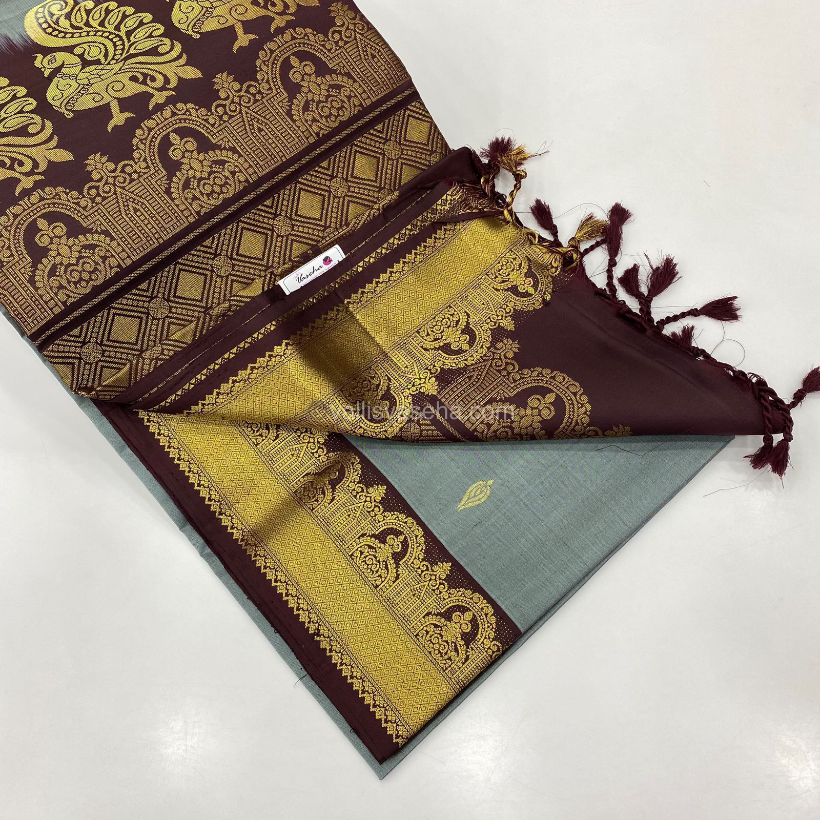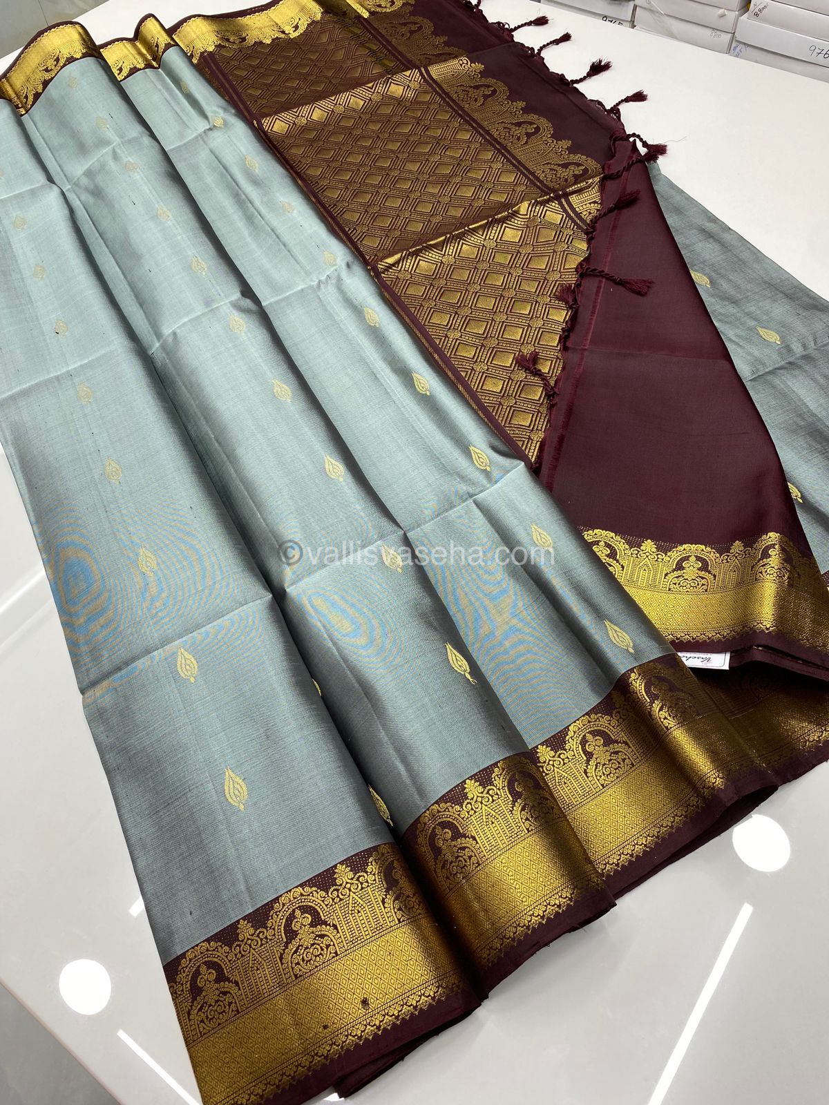 Pure Soft Silk Saree - Grey With Brown Combo - VVPSS015