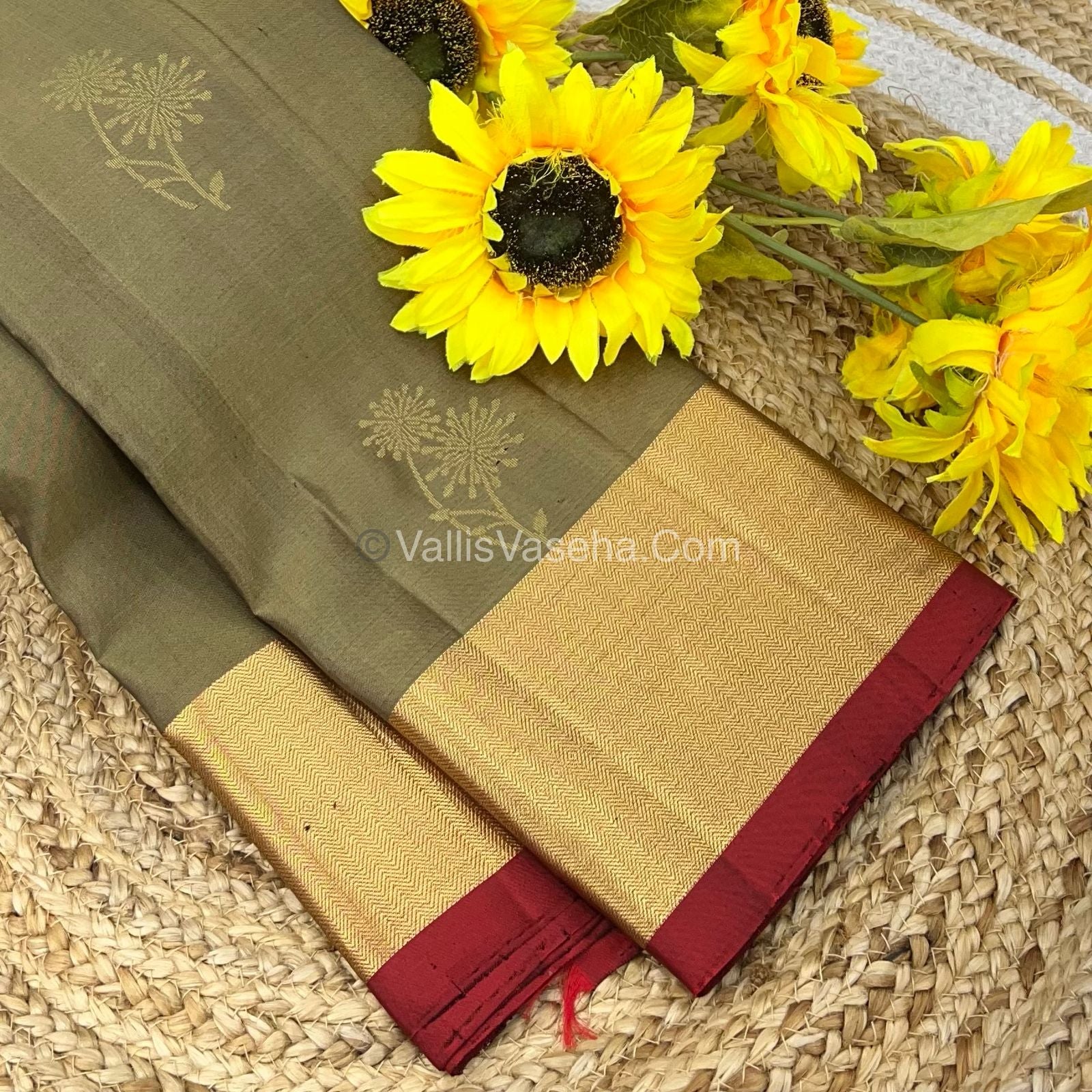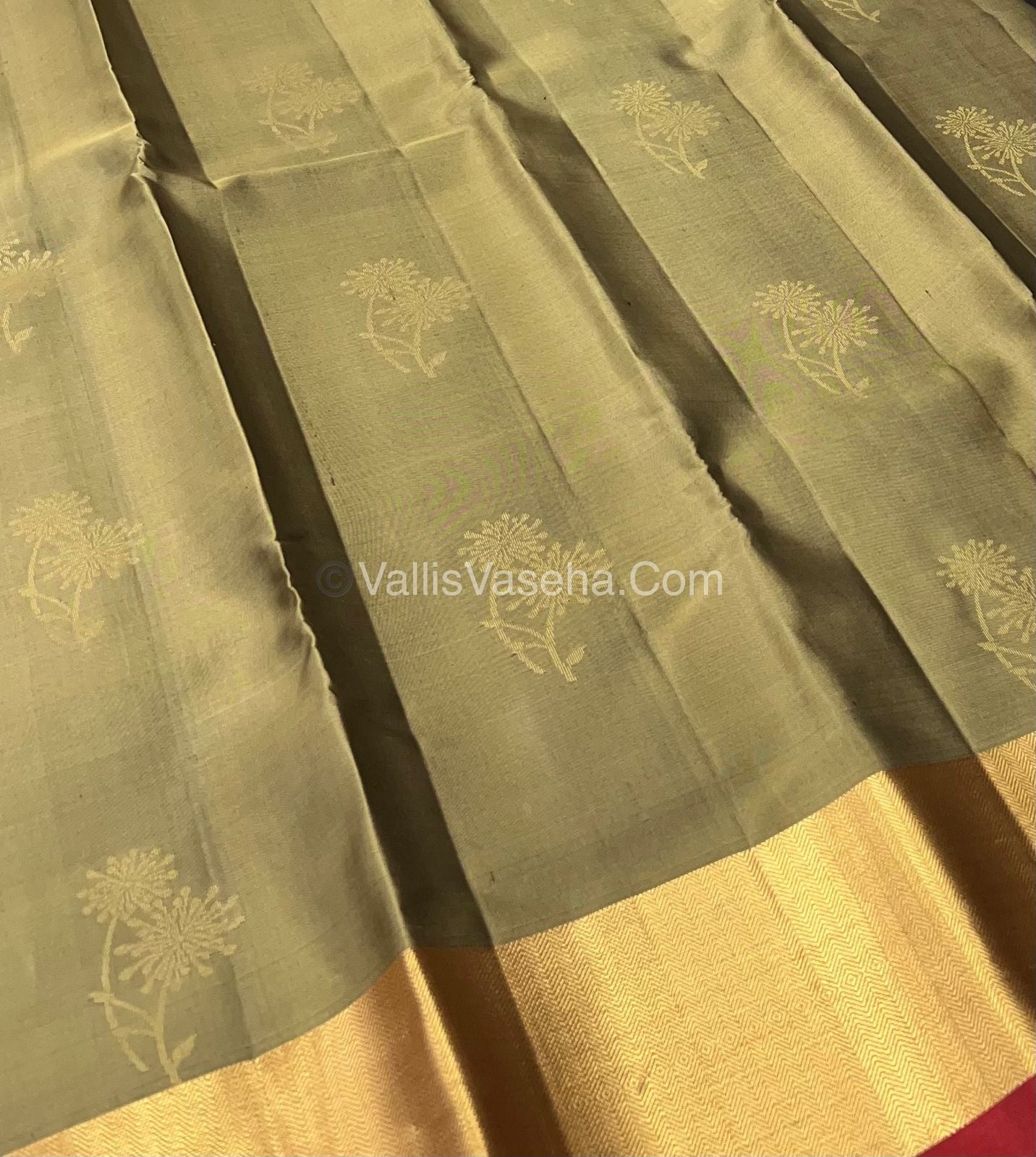 Pure Soft Silk Saree. Double warp with soft finish , All over double flower butta Design butta with contrast thick Zari ( zig zag design) border with Contrast Rich Pallu and Contrast Blouse.