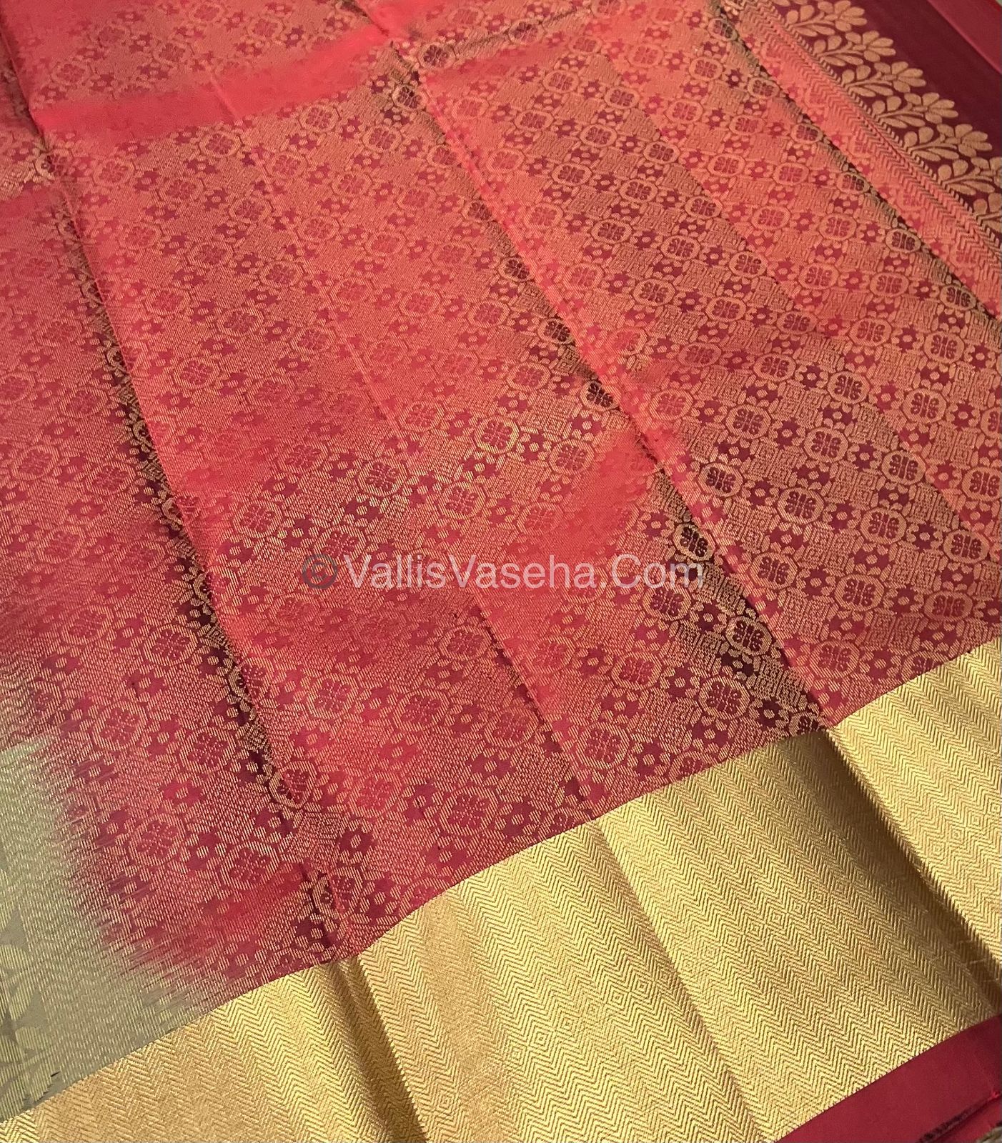 Pure Soft Silk Saree - Greyish Chiku & Merunish Red Combo - VVPSS036