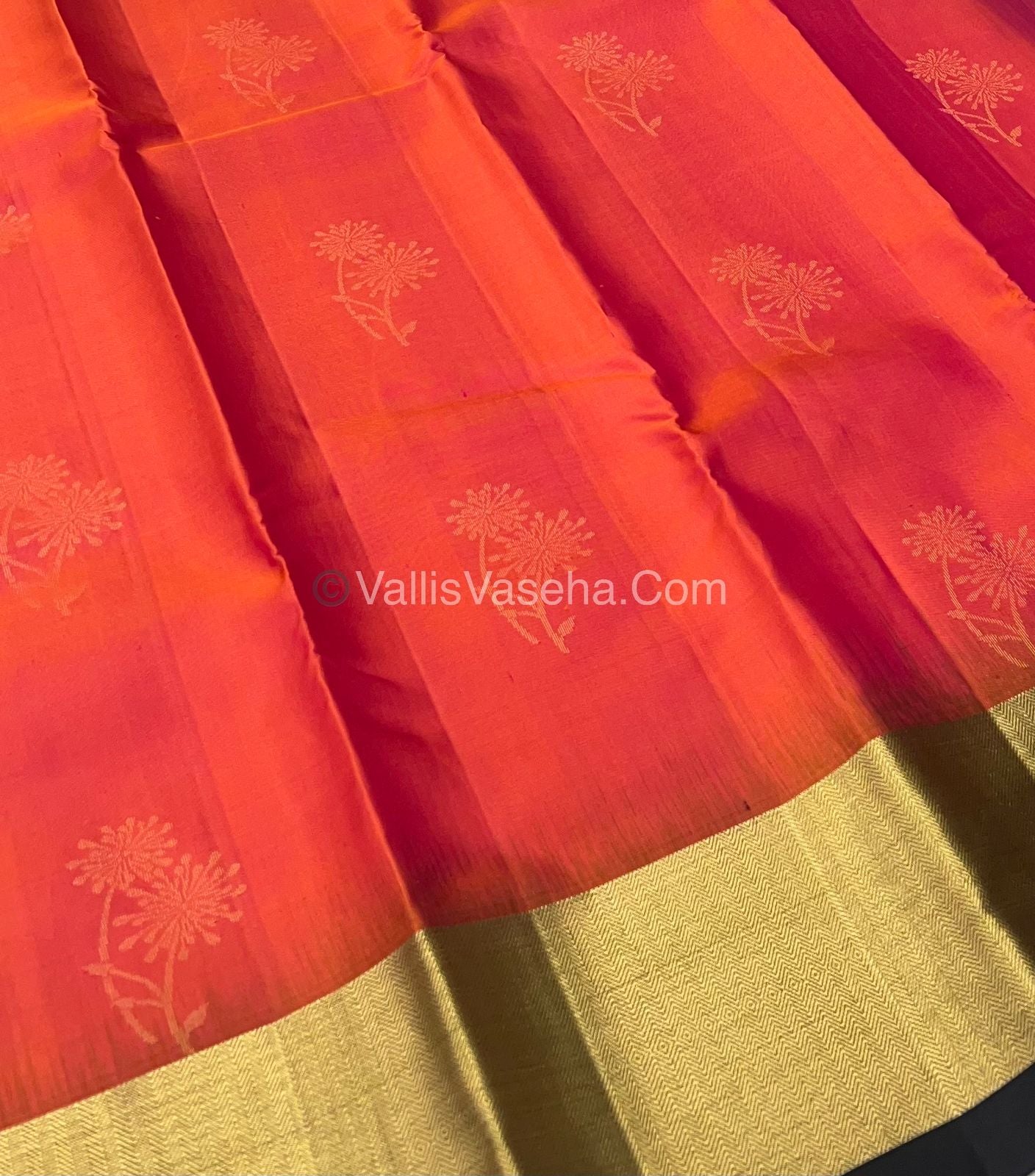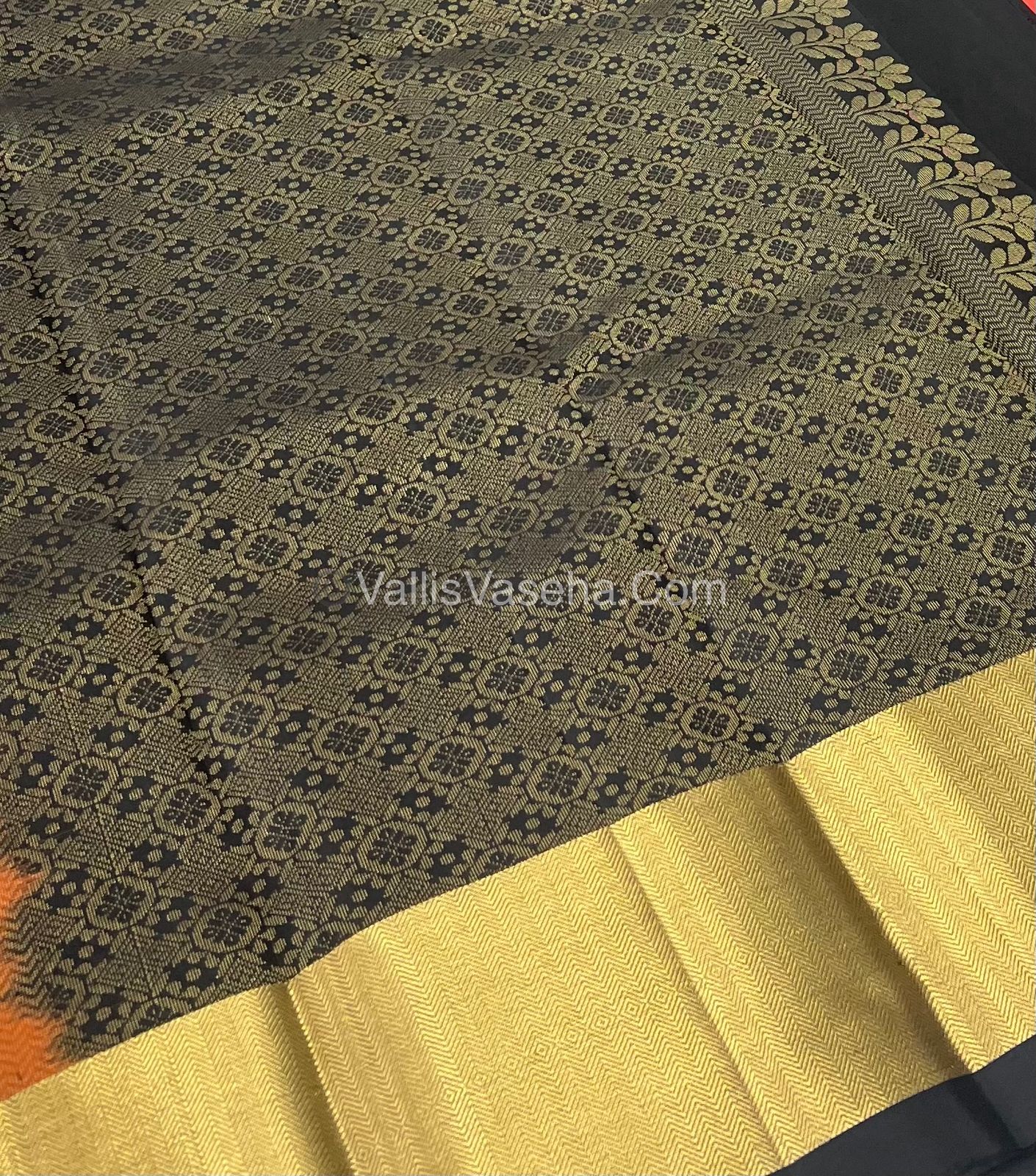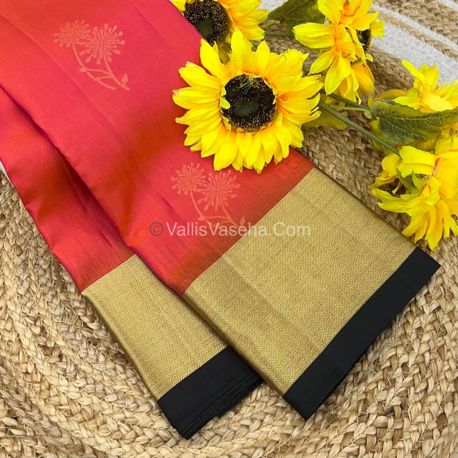Pure Soft Silk Saree - Peachish Orange & Black Combo - VVPSS036