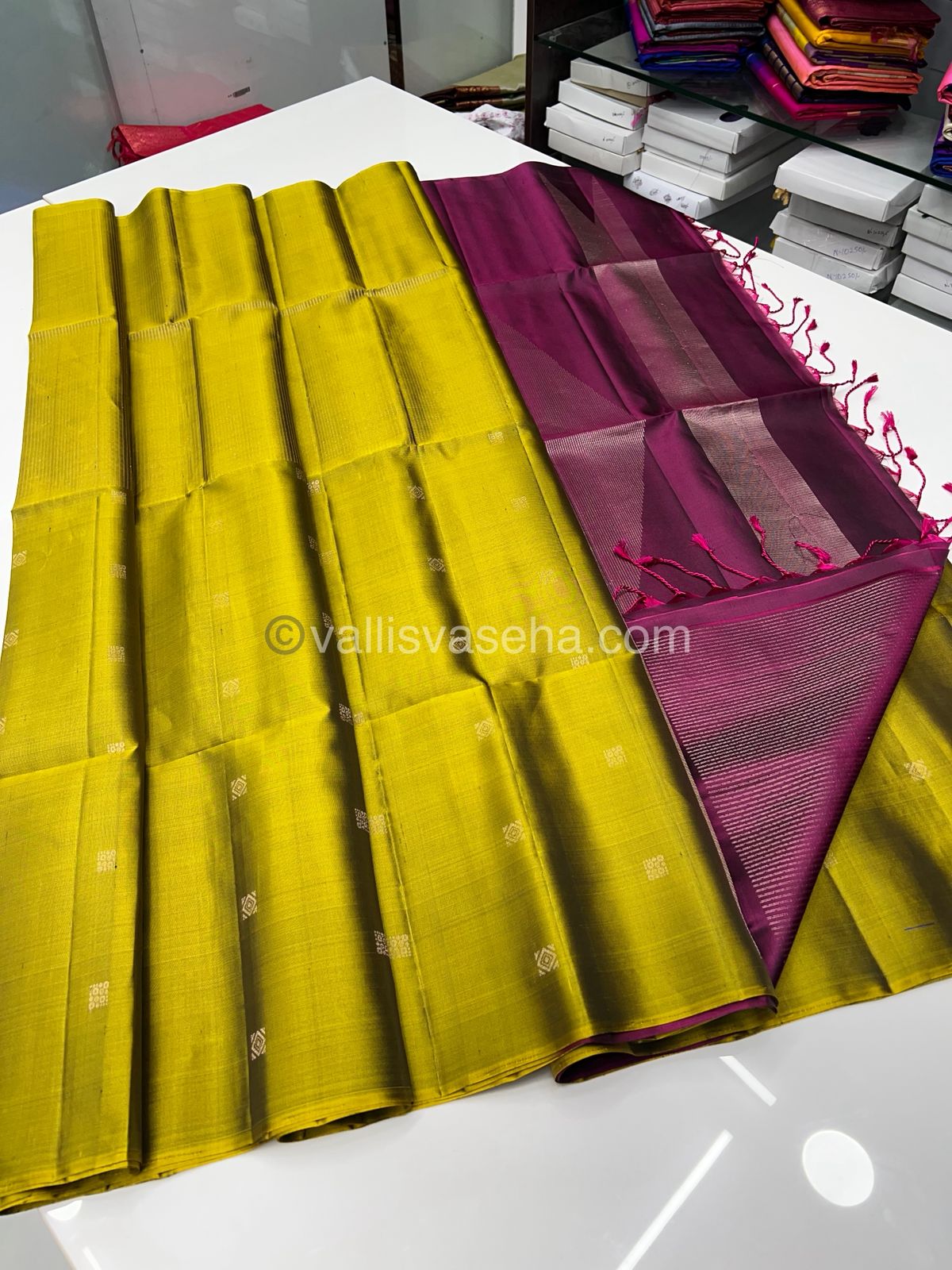Pure Soft Silk Saree - Double warp with soft finish , light weight saree, All over Zari butta with Border less .Contrast Rich Pallu and Contrast Blouse.