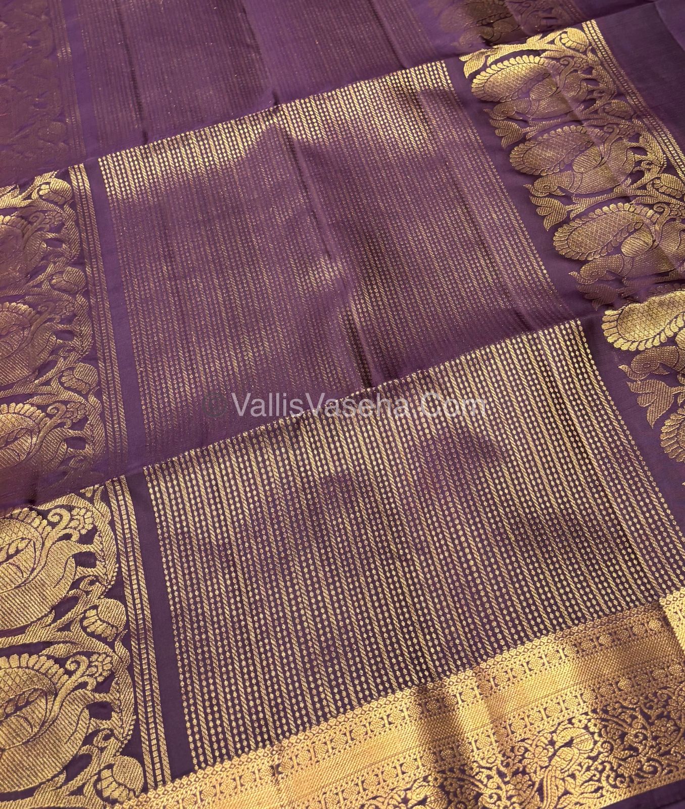 Pure Soft Silk Saree - Kanchi Border - Rust Orange & Purple Combo - VVPSS046