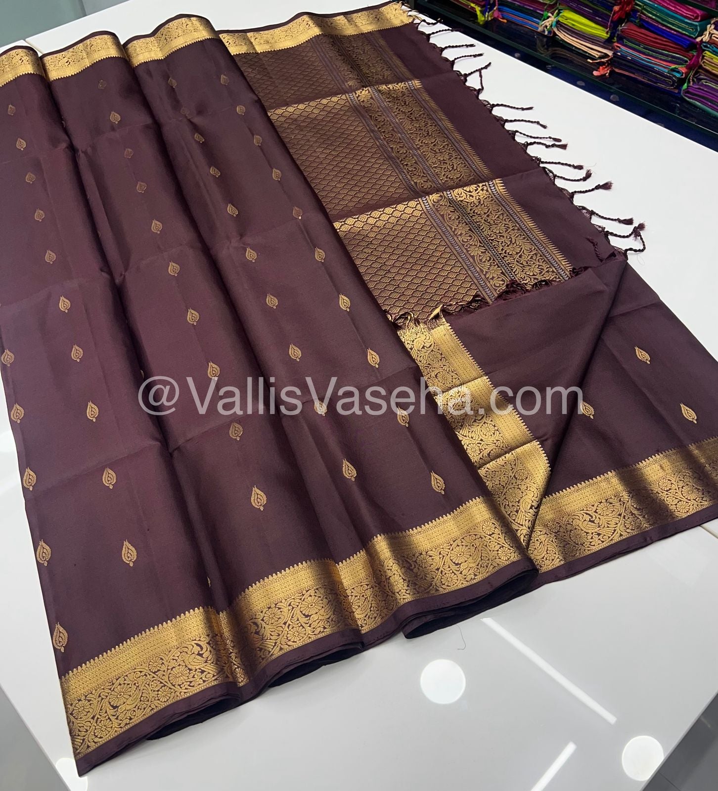 Pure Soft Silk Saree - Kanchi Border - Brown Shade - VVPSS046