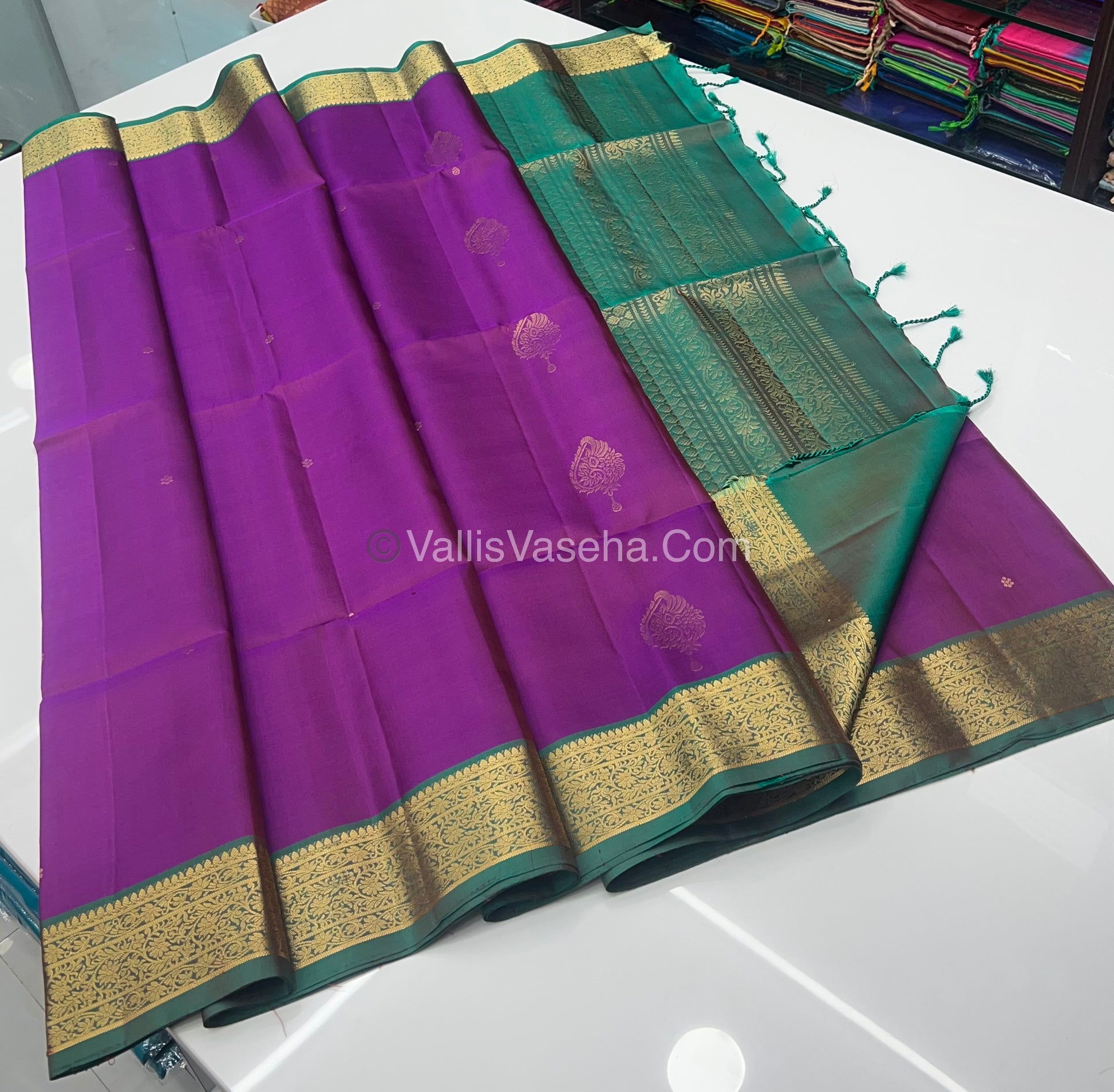 Pure Soft Silk Saree - Kanchi Border - Velum & Mayilum - Purplish Pink & Green Combo - VVPSS046