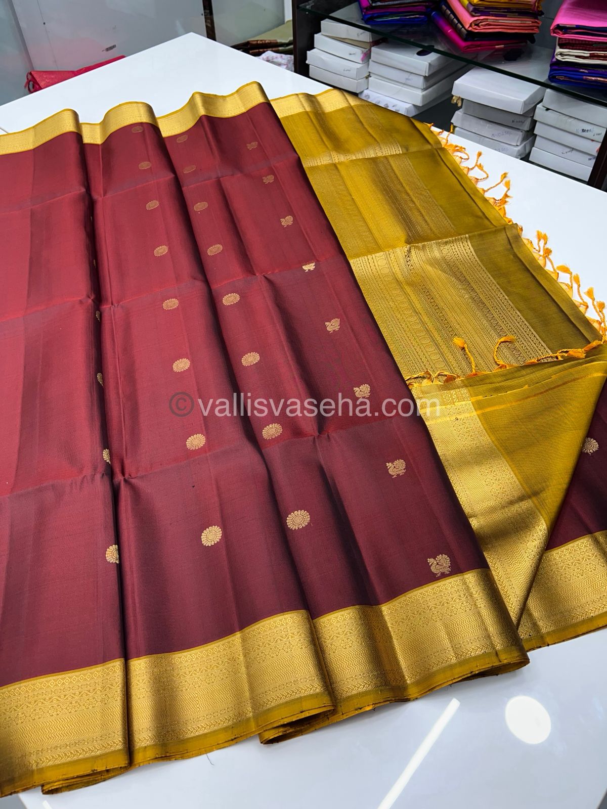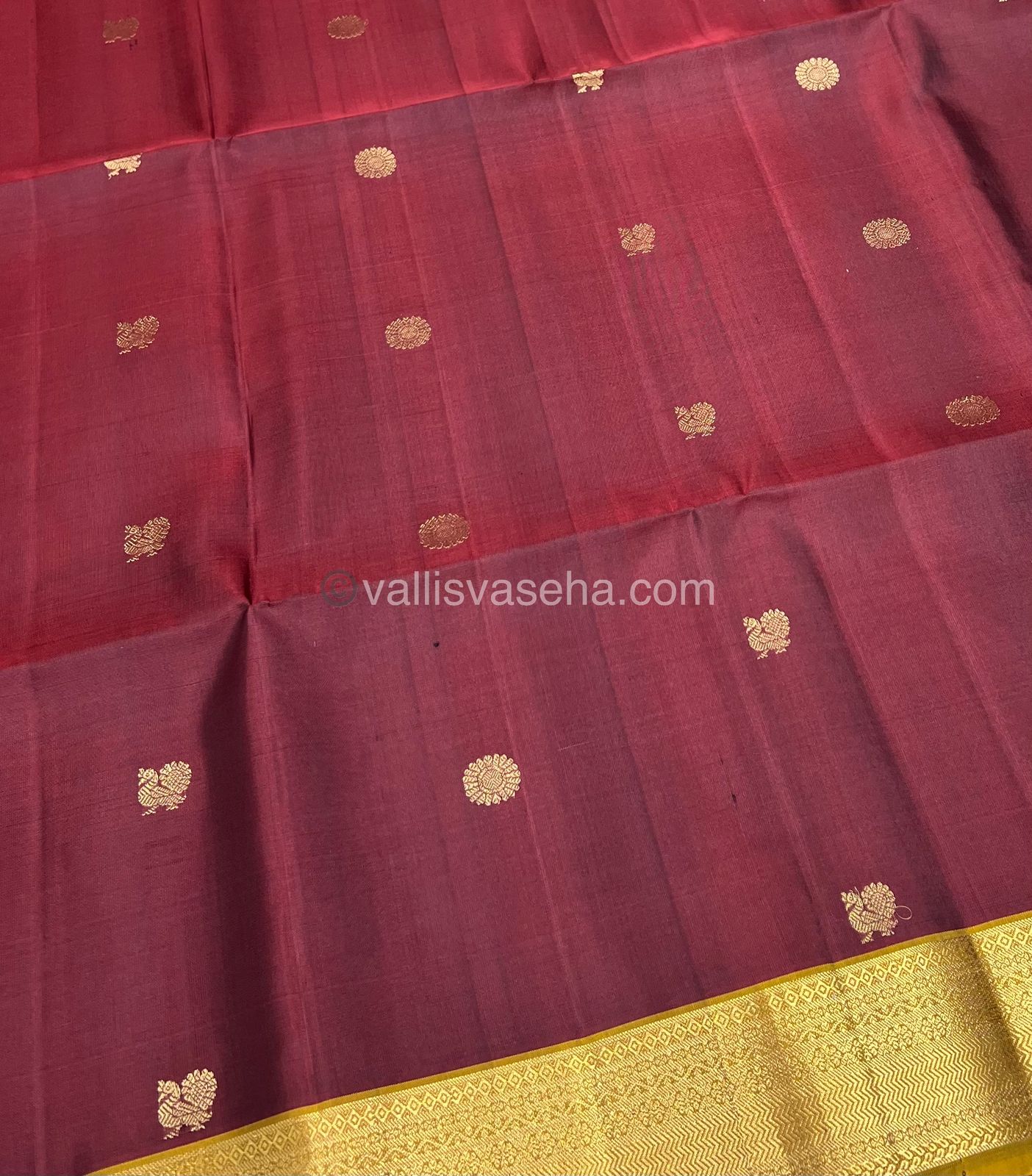 Pure Soft Silk Saree - Double warp with soft finish , light weight saree, All over Small Mayil & Chakkaram butta, contrast kanchi border.Contrast Rich Pallu and Contrast Blouse.