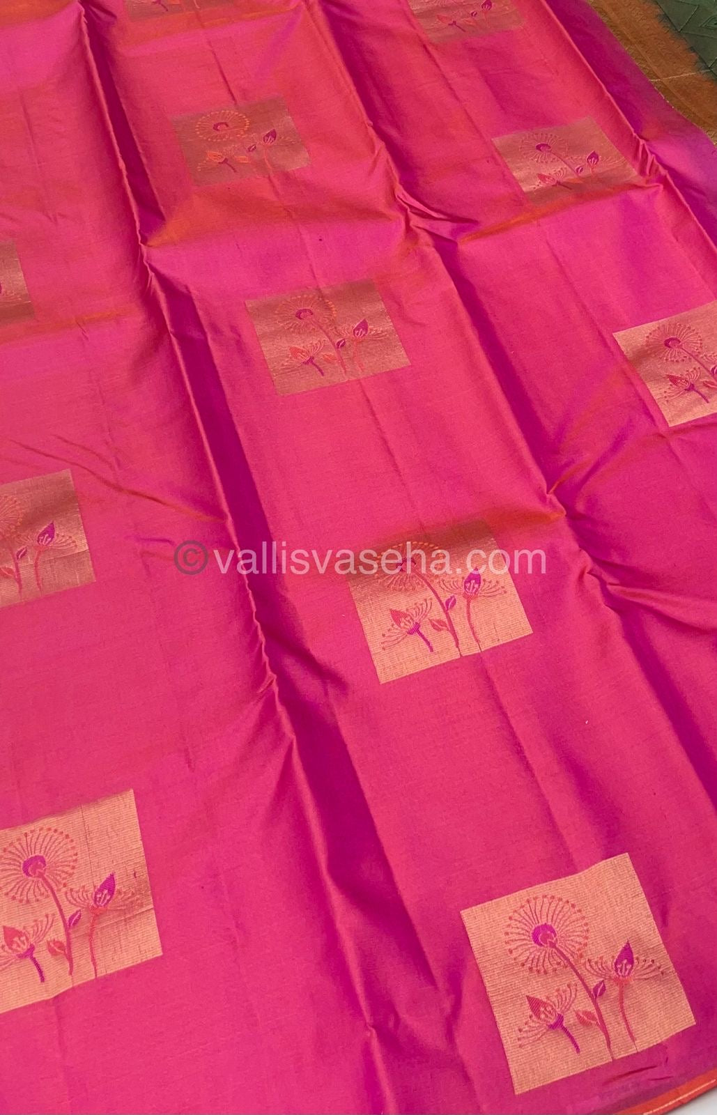Pure Soft Silk Saree - Light Weight - Double tone Pink with Green shade - VVPSS025