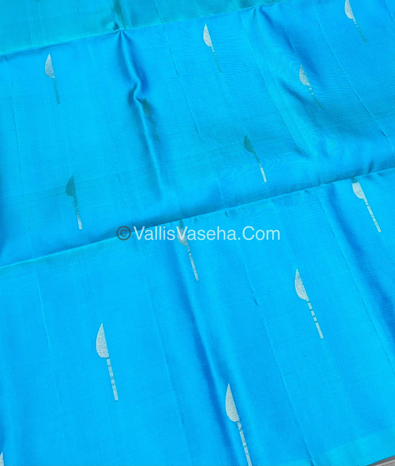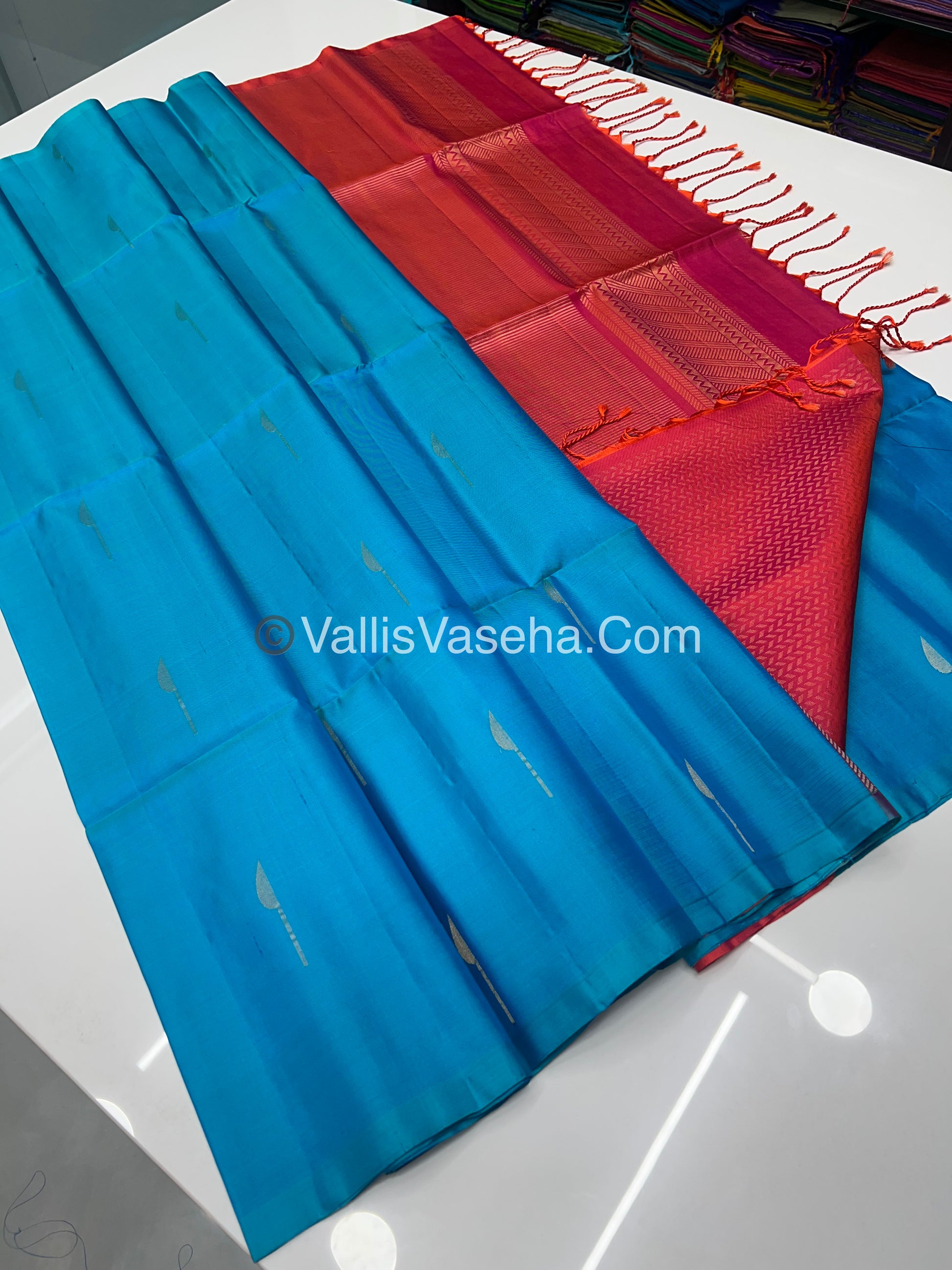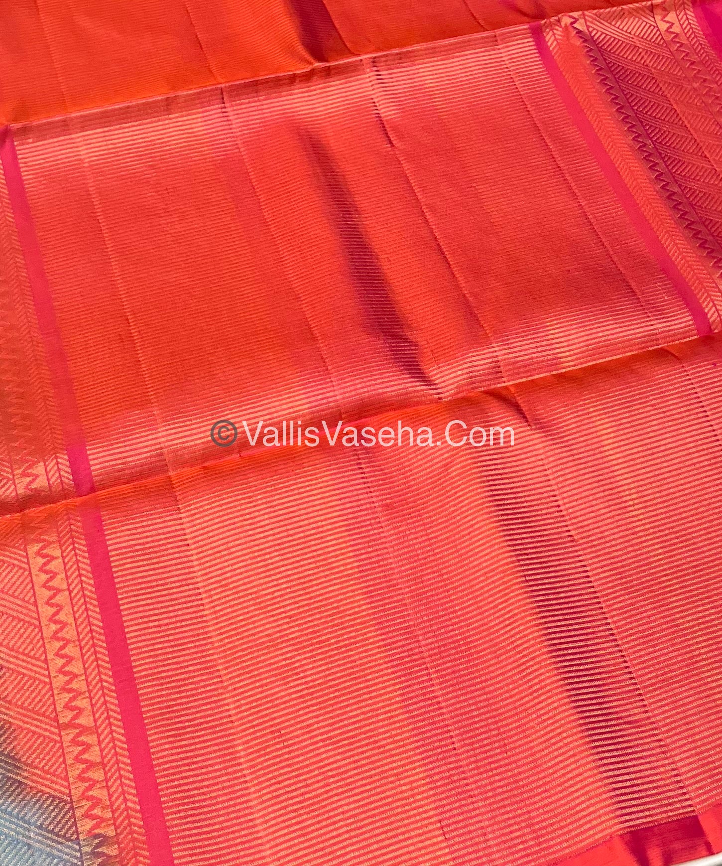 Pure Soft Silk Saree - Light weight - Border Less - Blue & Peach - VVPSS035