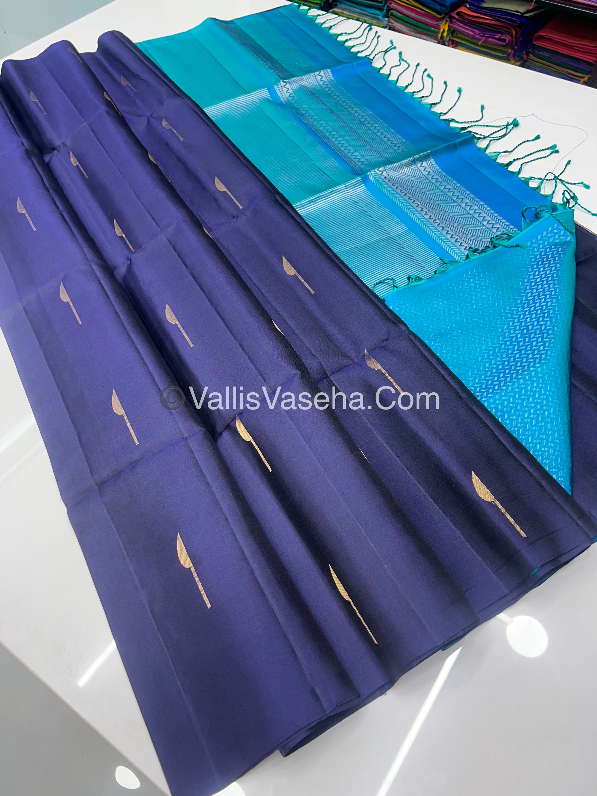 Pure Soft Silk Saree - Light weight - Border Less - Navy Blue & Blue - VVPSS035