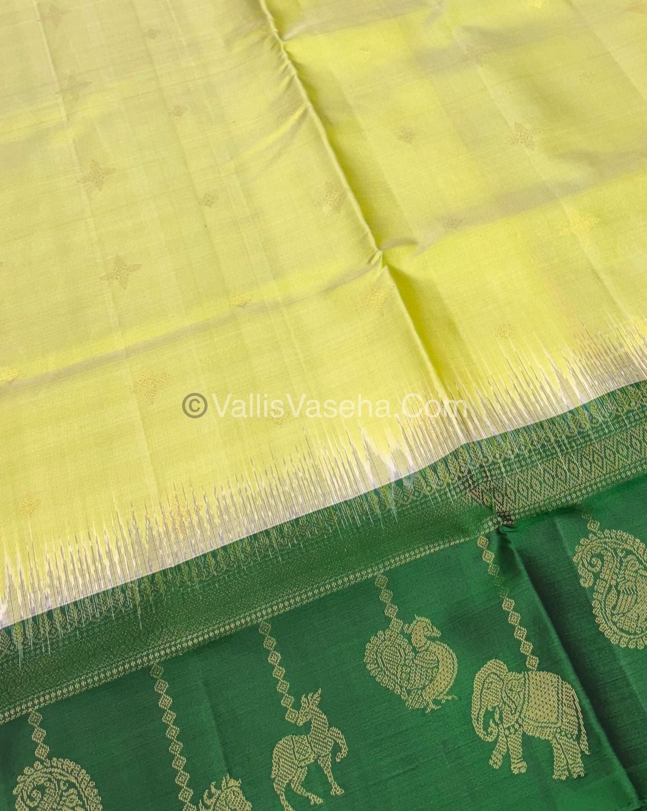 Pure Soft Silk Saree - (Merry-Go-Round Design ) - Light Yellowish Green with Green Shade - VVPSS059