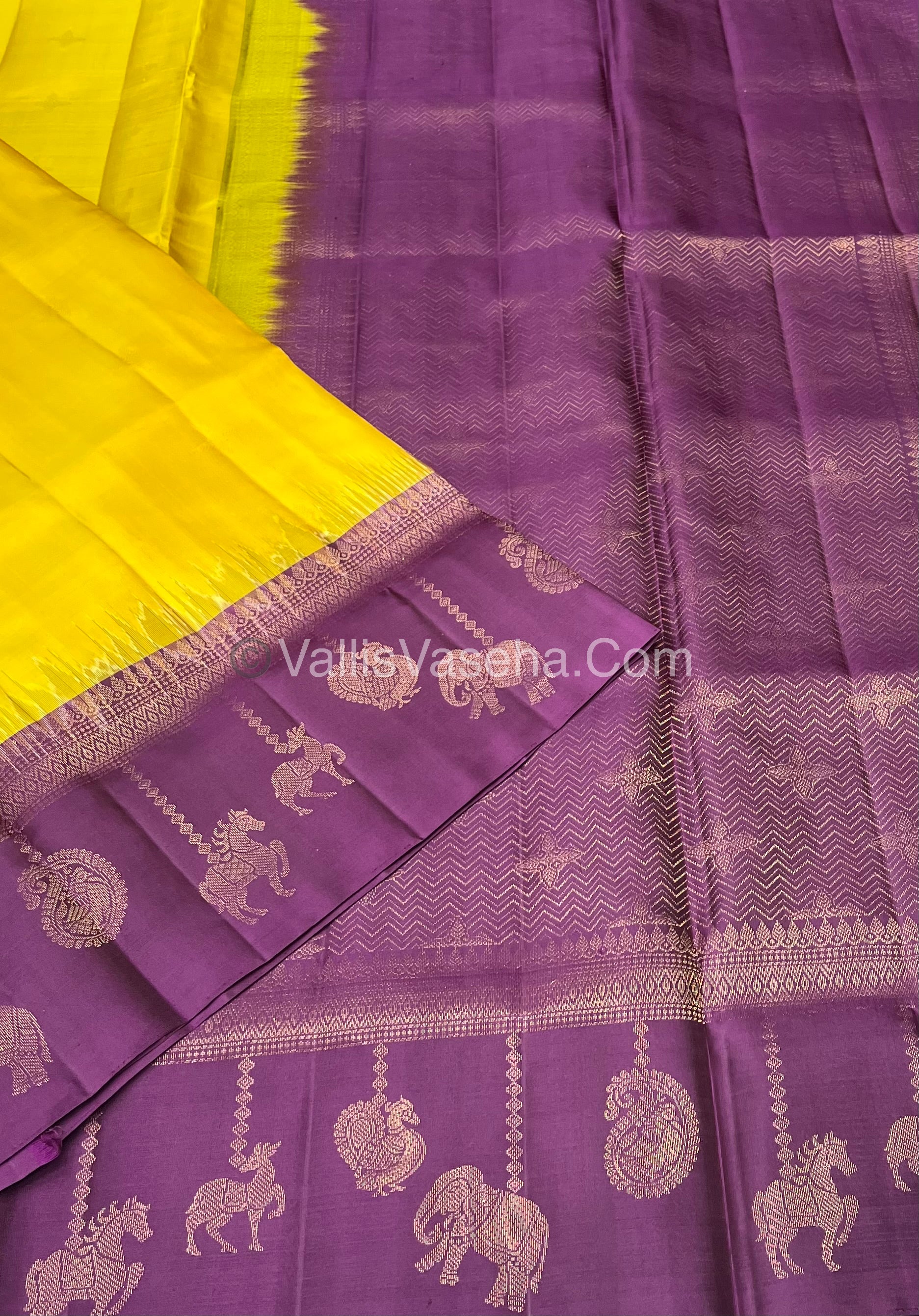 Pure Soft Silk Saree - (Merry-Go-Round Design ) - Yellow with Purple Shade - VVPSS059