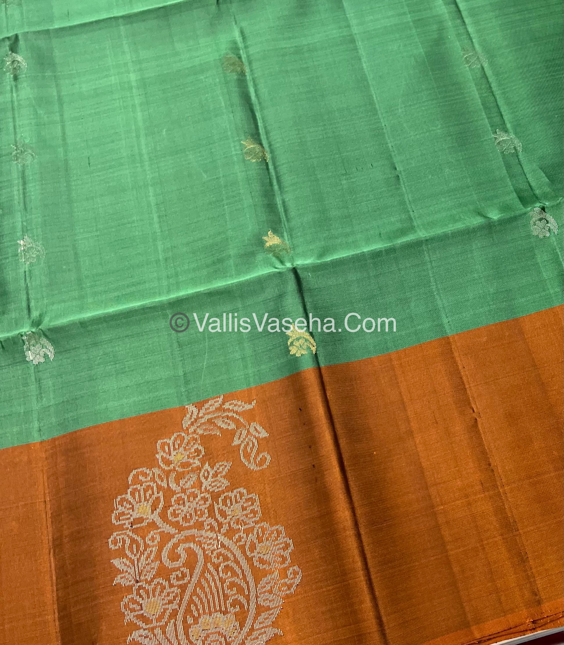 Pure Soft Silk Saree - Green & Rust Orange - VVPSS061