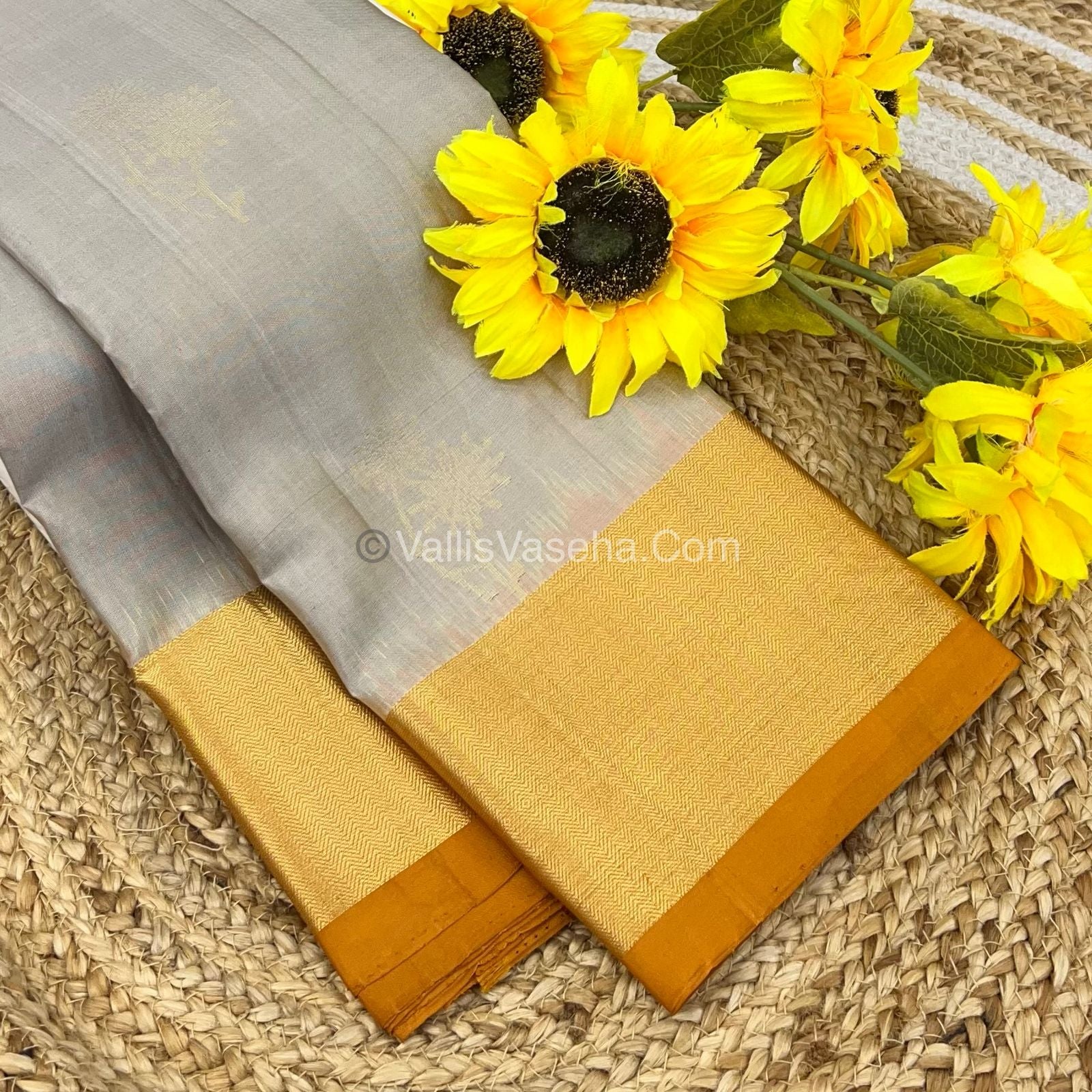 Pure Soft Silk Saree - Grey & Mustard Yellow Combo - VVPSS036
