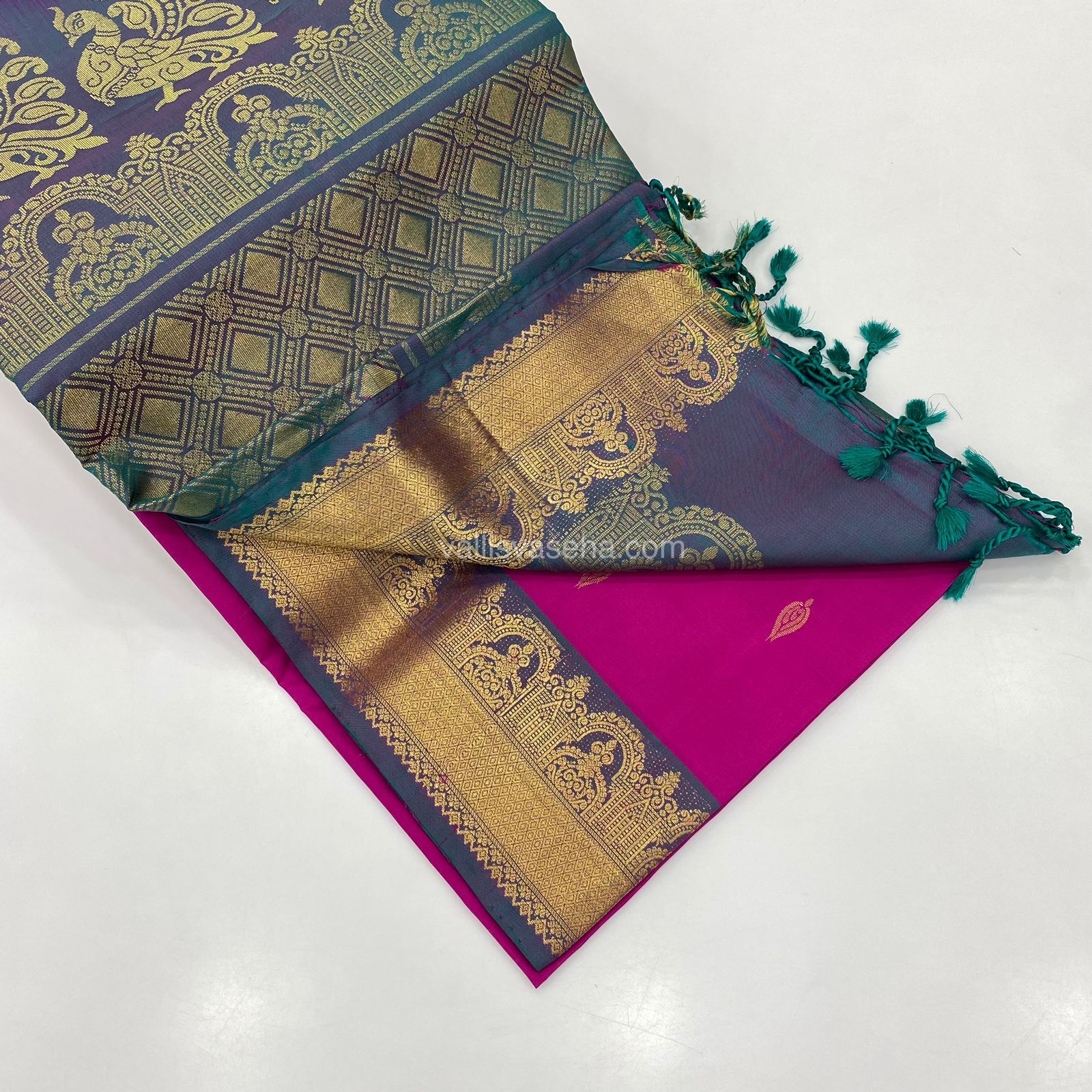 Pure Soft Silk Saree - Pink With Purplish Blue Combo - VVPSS015