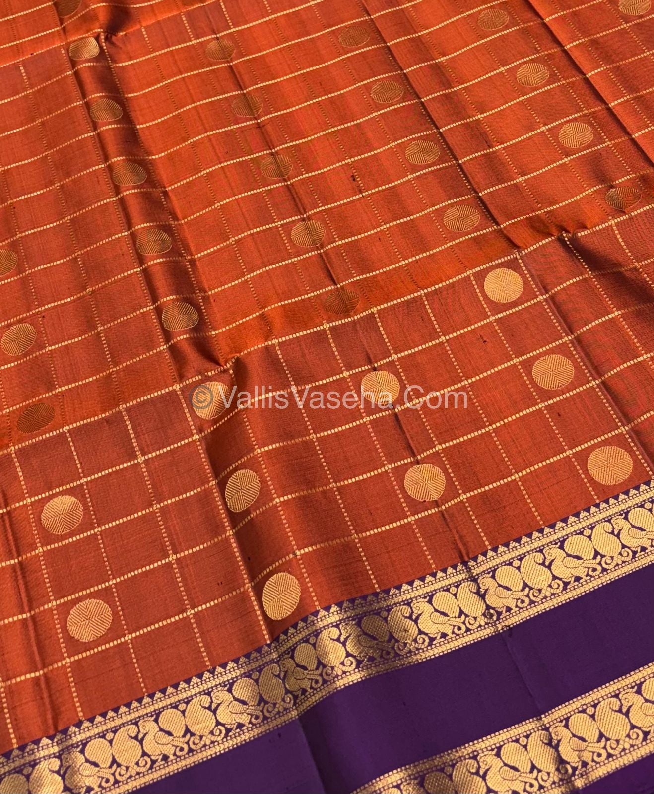 Pure Soft Silk Saree - All over Zari checks - Small Coin Butta - Double warp with soft finish , contrast Retta Petta Annam / Mayil border.Contrast Rich Pallu and Contrast Blouse.