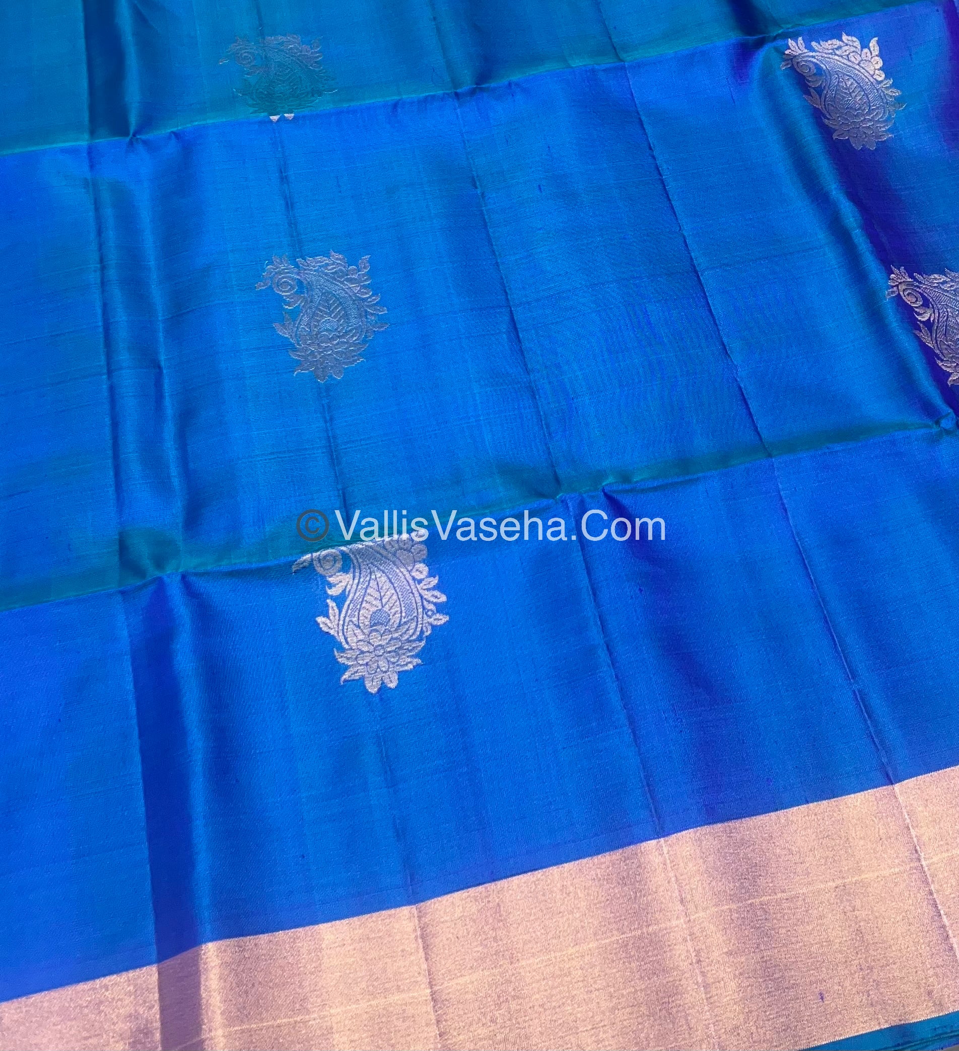 Pure Soft Silk Saree.Double warp with soft finish , light weight saree, All over Zari butta, contrast Soft Tissue border.Contrast Rich Pallu and Contrast Blouse.