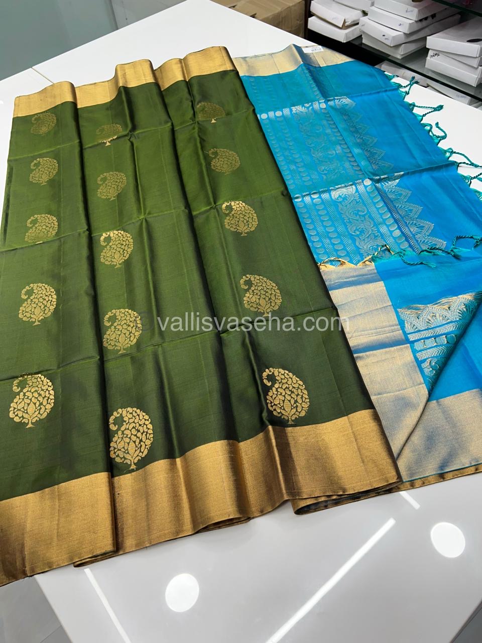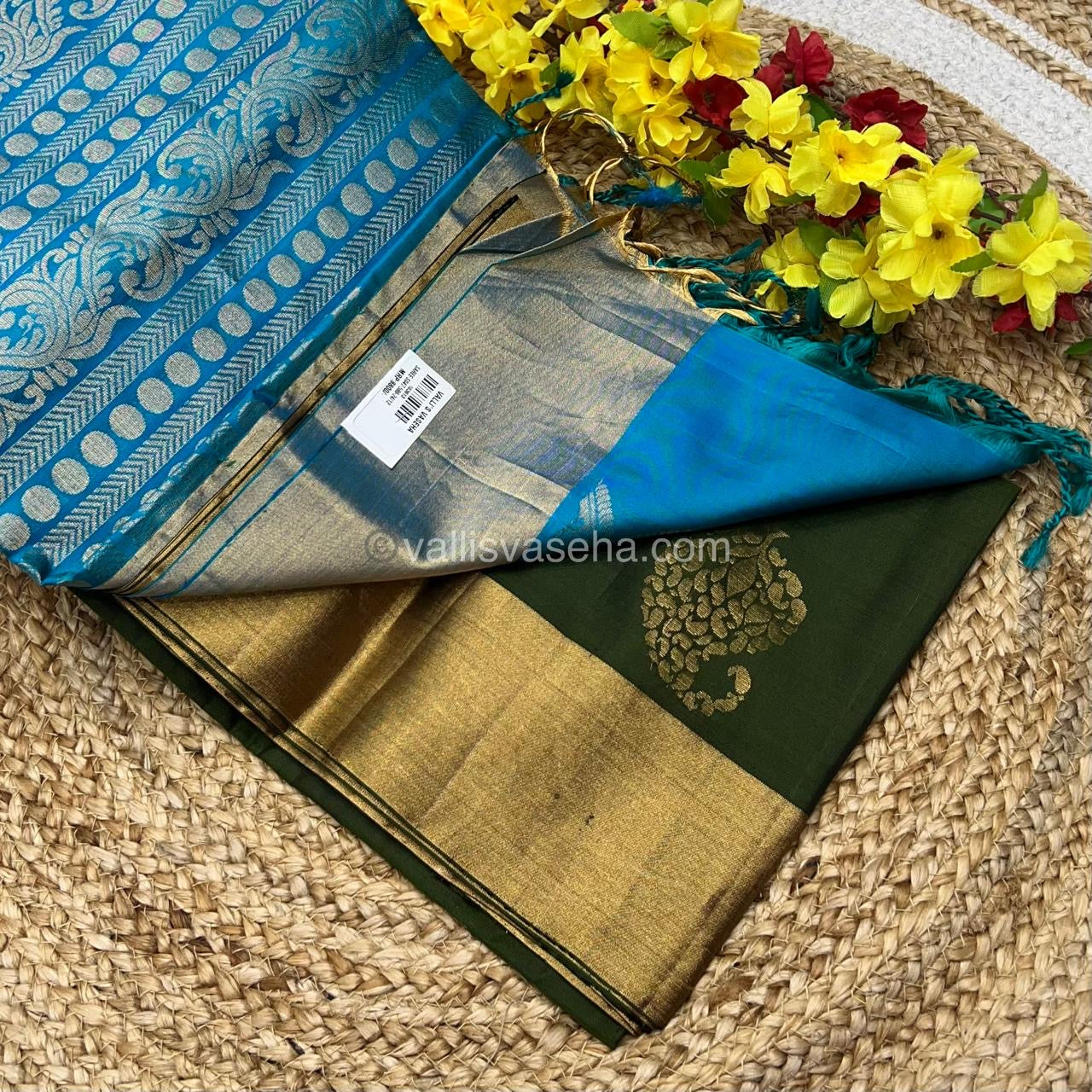 Pure Soft Silk Saree.Double warp with soft finish , light weight saree, All over Zari butta, contrast Soft Tissue border.Contrast Rich Pallu and Contrast Blouse.