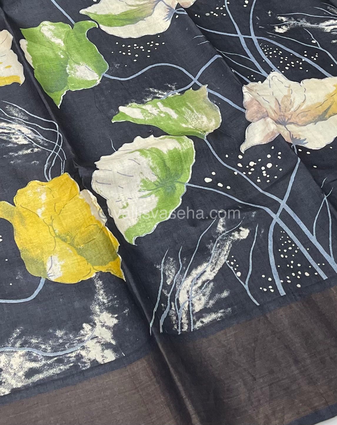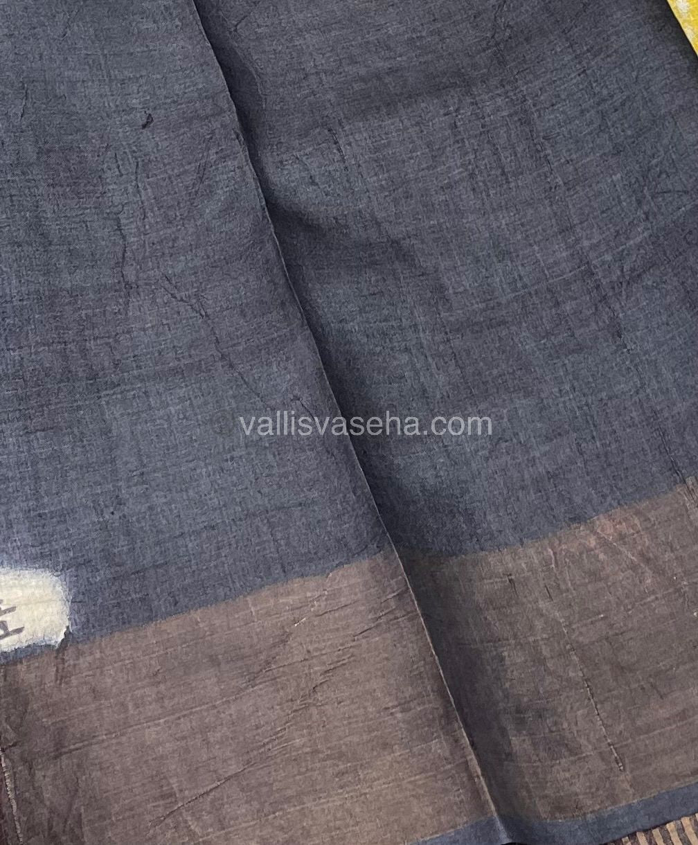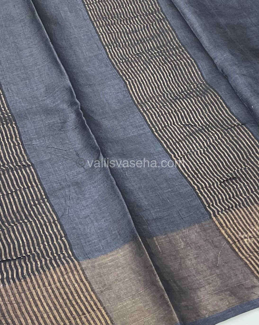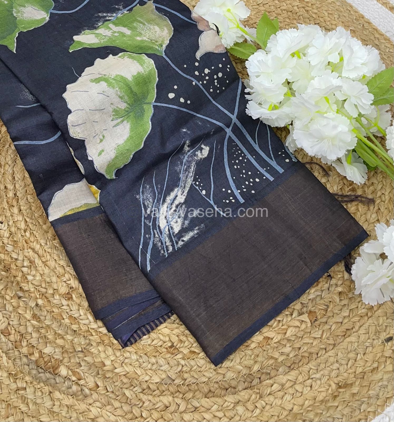 Pure Tussar Silk Is a Natural , Breathable Fabric That Allows For Airflow And Moisture Wicking, It Has a Slightly Coarse Texture That Gives It a Unique Feel And Appearance. All Over Printed With Straips Pallu and Running blouse.