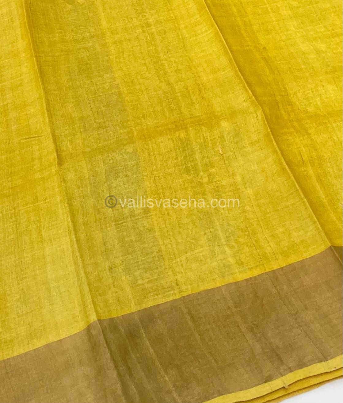 Pure Tussar Silk - Grey With Yellow Shade - VVPTS001